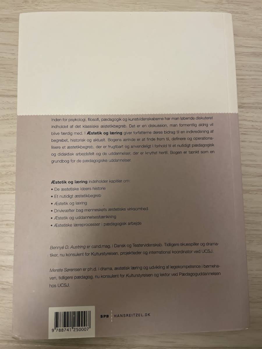"Æstetik og læring" er en grundbog, der sætter fokus på de æstetiske læreprocesser og deres betydning i pædagogiske og didaktiske kontekster. Forfatterne Merete Sørensen og Bennyé D. Austring nærmer sig det brede og ofte komplekse begreb æstetik ved at belyse, hvordan sanselige, harmoniske, smukke og kunstneriske dimensioner alle spiller ind i den æstetiske erfaring og praksis. Med udgangspunkt i en lang tradition for diskussioner om det æstetiske, søger bogen at fastslå, definere og operationalisere et æstetikbegreb, som er gældende og anvendeligt for moderne uddannelsesinstitutioner. "Æstetik og læring" indeholder kapitler om de æstetiske ideers historie, et nutidigt æstetikbegreb, æstetik og læring, drivkræfter bag menneskets æstetiske virksomhed, æstetik og uddannelsestænkning samt æstetiske læreprocesser i pædagogisk arbejde.