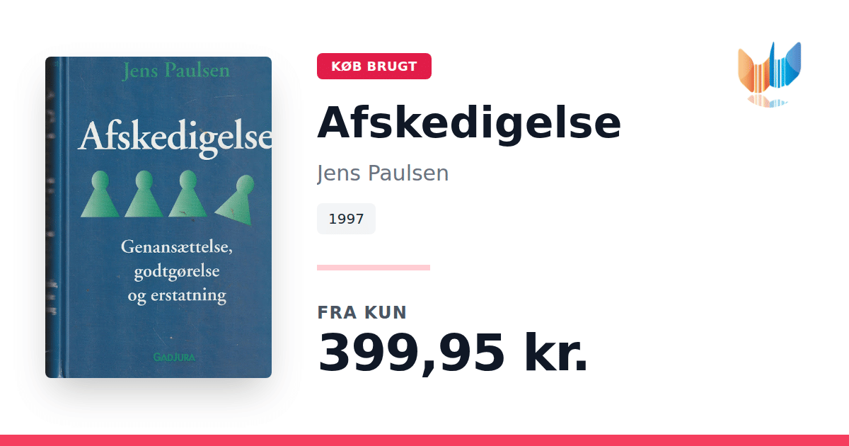 Lige nu kan du købe "Afskedigelse" af Jens Paulsen til kun 399,95 kr. Bogen du ser her er brugt, og i perfekt stand. Vi har i øjeblikket kun et enkelt eksemplar til salg af "Afskedigelse", så slå til mens du kan!