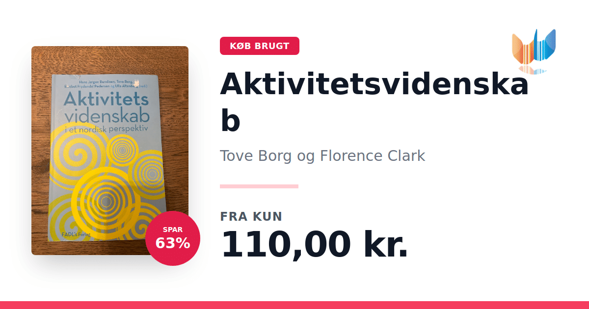 Lige nu kan du købe "Aktivitetsvidenskab" af Tove Borg og Florence Clark til kun 110,00 kr. Du sparer hele 63% af nyprisen! Bogen du ser her er brugt, og i god stand. Vi har i øjeblikket kun et enkelt eksemplar til salg af "Aktivitetsvidenskab", så slå til mens du kan!