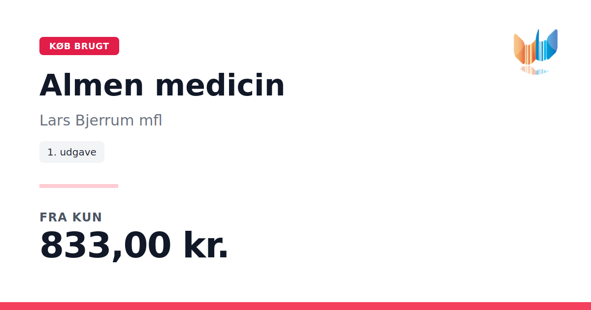 Lige nu kan du købe "Almen medicin" af Lars Bjerrum mfl til kun 833,00 kr. Bogen du ser her er brugt, og i perfekt stand. Vi har i øjeblikket kun et enkelt eksemplar til salg af "Almen medicin", så slå til mens du kan!
