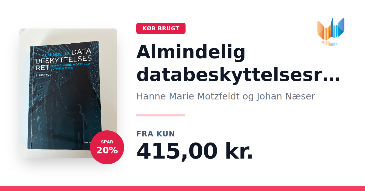 Lige nu kan du købe "Almindelig databeskyttelsesret" af Hanne Marie Motzfeldt og Johan Næser til kun 415,00 kr. Du sparer hele 20% af nyprisen! Bogen du ser her er brugt, og i perfekt stand. Vi har i øjeblikket kun et enkelt eksemplar til salg af "Almindelig databeskyttelsesret", så slå til mens du kan!