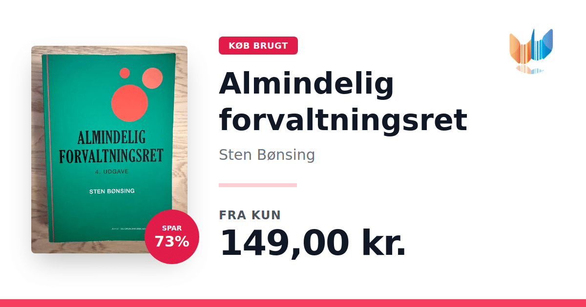 Lige nu kan du købe "Almindelig forvaltningsret" af Sten Bønsing til kun 149,00 kr. Du sparer hele 73% af nyprisen! Bogen du ser her er brugt, og i perfekt stand. Vi har i øjeblikket 5 eksemplarer til salg af "Almindelig forvaltningsret", så husk at se de forskellige udgaver.