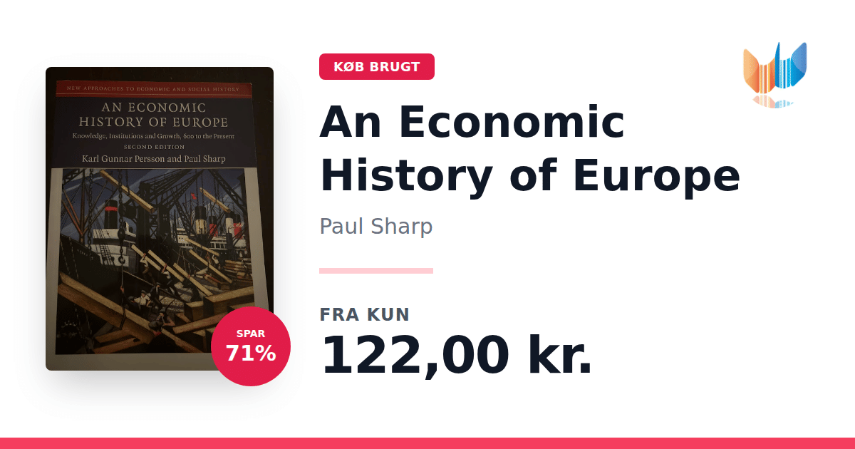 Lige nu kan du købe "An Economic History of Europe" af Paul Sharp til kun 122,00 kr. Du sparer hele 71% af nyprisen! Bogen du ser her er brugt, og i god stand. Vi har i øjeblikket 2 eksemplarer til salg af "An Economic History of Europe", så husk at se de forskellige udgaver.