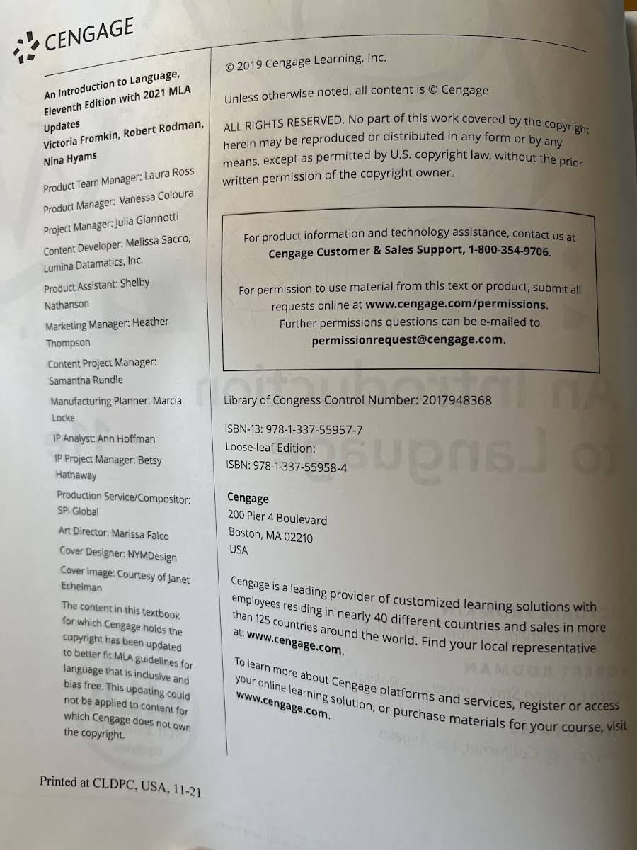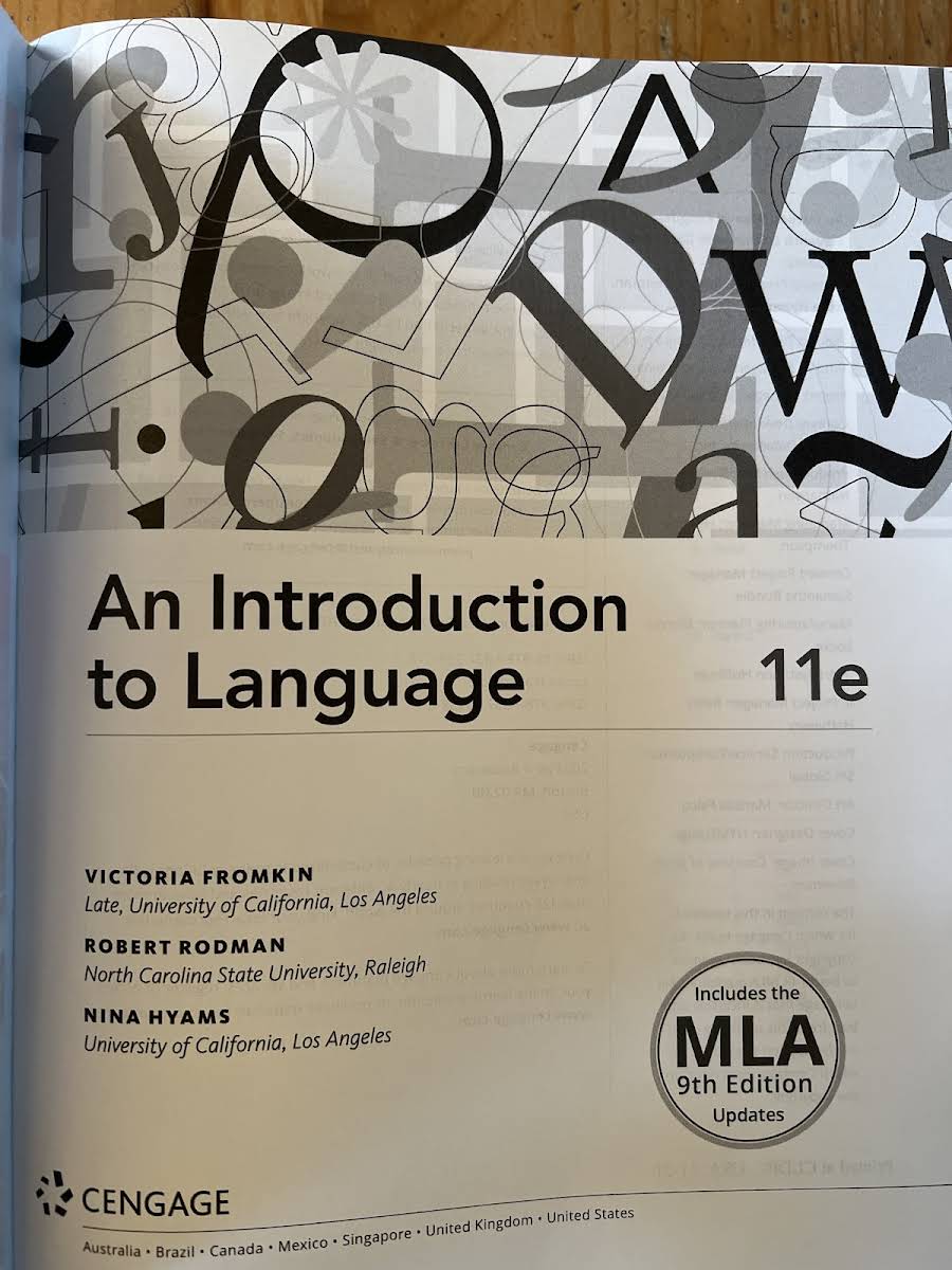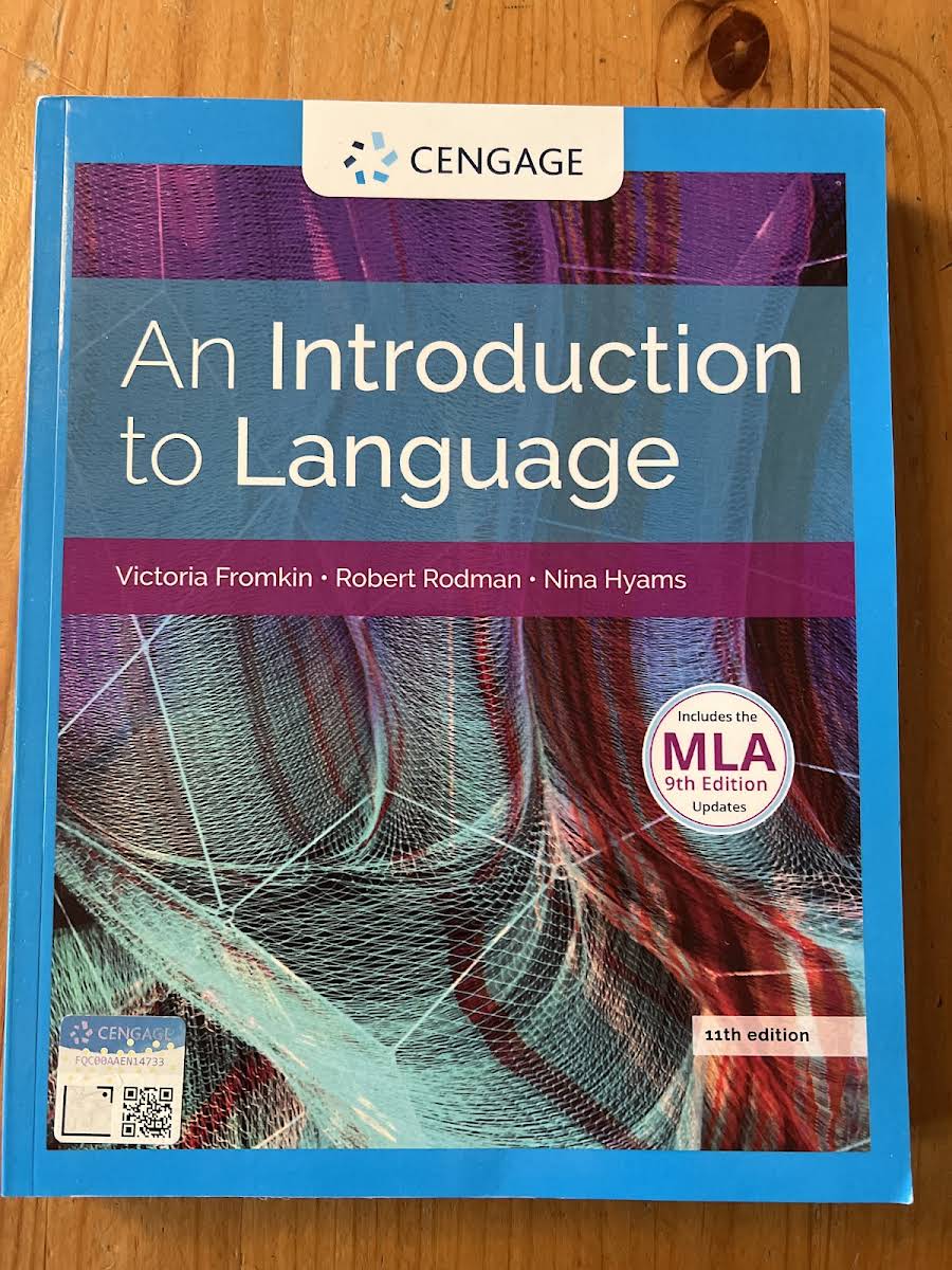 • An Introduction to Language (w/ MLA9E Updates), Victoria Fromkin, Nina Hyams, Robert Rodman, 9781337559577