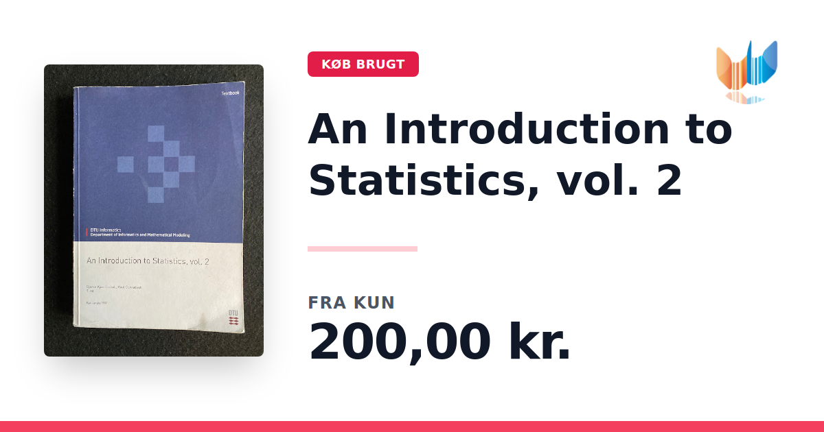 Lige nu kan du købe "An Introduction to Statistics, vol. 2" til kun 200,00 kr. Bogen du ser her er brugt, og i god stand. Vi har i øjeblikket kun et enkelt eksemplar til salg af "An Introduction to Statistics, vol. 2", så slå til mens du kan!