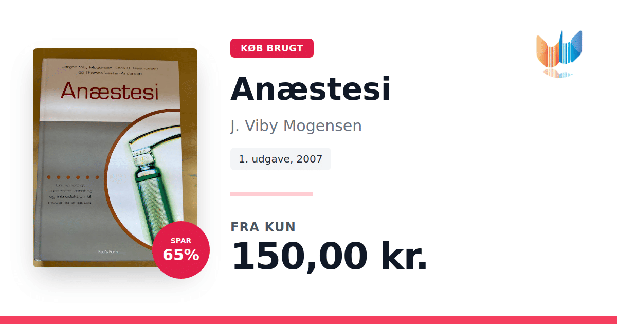 Lige nu kan du købe "Anæstesi" af J. Viby Mogensen til kun 150,00 kr. Du sparer hele 65% af nyprisen! Bogen du ser her er brugt, og i perfekt stand. Vi har i øjeblikket 3 eksemplarer til salg af "Anæstesi", så husk at se de forskellige udgaver.
