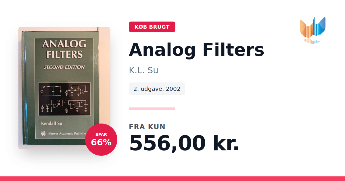 Lige nu kan du købe "Analog Filters" af K.L. Su til kun 556,00 kr. Du sparer hele 66% af nyprisen! Bogen du ser her er brugt, og i god stand. Vi har i øjeblikket kun et enkelt eksemplar til salg af "Analog Filters", så slå til mens du kan!