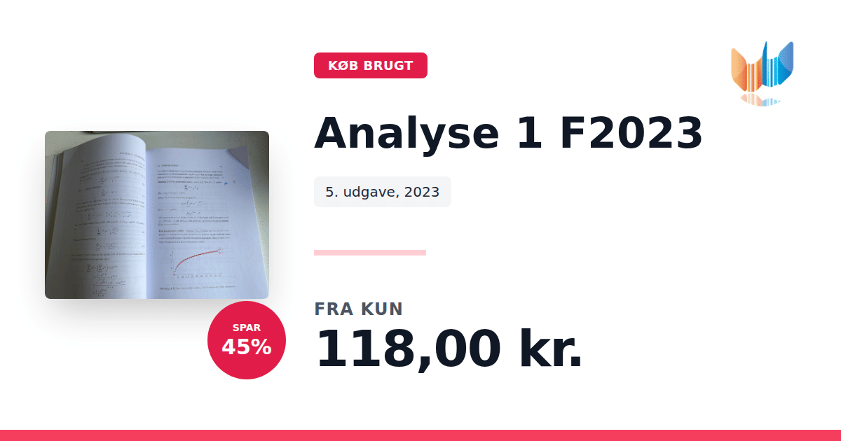 Lige nu kan du købe "Analyse 1 F2023" til kun 118,00 kr. Du sparer hele 45% af nyprisen! Bogen du ser her er brugt, og i god stand. Vi har i øjeblikket kun et enkelt eksemplar til salg af "Analyse 1 F2023", så slå til mens du kan!