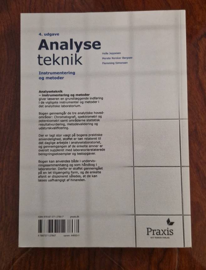 "Analyseteknik" præsenterer en grundig indføring i de essentielle instrumenter og metoder, der anvendes i det analytiske laboratorium. Bogen fokuserer på de tre centrale analyseretninger: chromatografi, spektrometri og potentiometri, og dykker desuden ned i statistisk resultatvurdering, metodevalidering og udstyrskvalificering. Med et klart og overskueligt layout tilbyder denne fjerde udgave, udgivet i 2013, en modulopbygget tilgang, hvor hvert kapitel kan studeres uafhængigt af de øvrige. Dette gør bogen særligt anvendelig for studerende og praktiserende laboratorieteknikere, idet emnerne suppleres med relevante beregningseksempler og testopgaver, der afspejler den daglige laboratoriepraksis. Bogen fungerer både som et undervisningsværktøj og som en praktisk håndbog, der sikrer, at teoretisk viden let kan omsættes til praksis i laboratoriemiljøet.