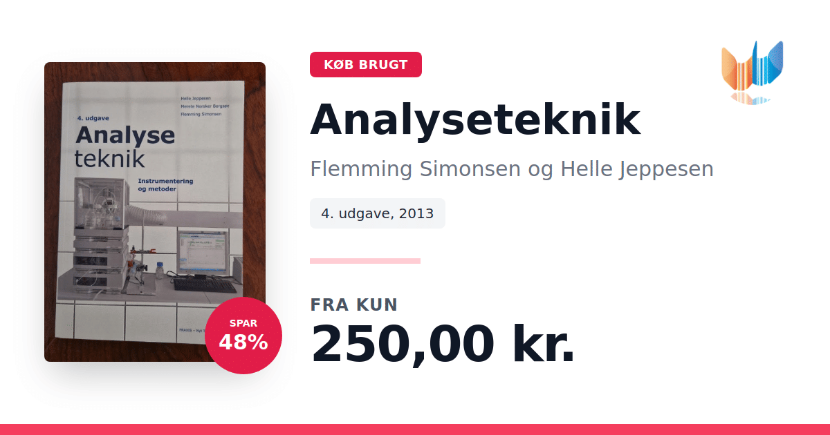 Lige nu kan du købe "Analyseteknik" af Flemming Simonsen og Helle Jeppesen til kun 250,00 kr. Du sparer hele 48% af nyprisen! Bogen du ser her er brugt, og i perfekt stand. Vi har i øjeblikket kun et enkelt eksemplar til salg af "Analyseteknik", så slå til mens du kan!