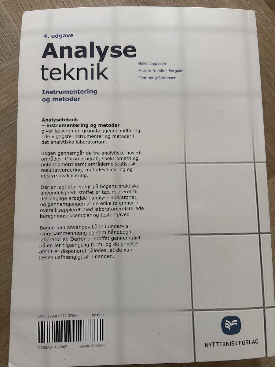 "Analyseteknik" præsenterer en grundig indføring i de essentielle instrumenter og metoder, der anvendes i det analytiske laboratorium. Bogen fokuserer på de tre centrale analyseretninger: chromatografi, spektrometri og potentiometri, og dykker desuden ned i statistisk resultatvurdering, metodevalidering og udstyrskvalificering. Med et klart og overskueligt layout tilbyder denne fjerde udgave, udgivet i 2013, en modulopbygget tilgang, hvor hvert kapitel kan studeres uafhængigt af de øvrige. Dette gør bogen særligt anvendelig for studerende og praktiserende laboratorieteknikere, idet emnerne suppleres med relevante beregningseksempler og testopgaver, der afspejler den daglige laboratoriepraksis. Bogen fungerer både som et undervisningsværktøj og som en praktisk håndbog, der sikrer, at teoretisk viden let kan omsættes til praksis i laboratoriemiljøet.