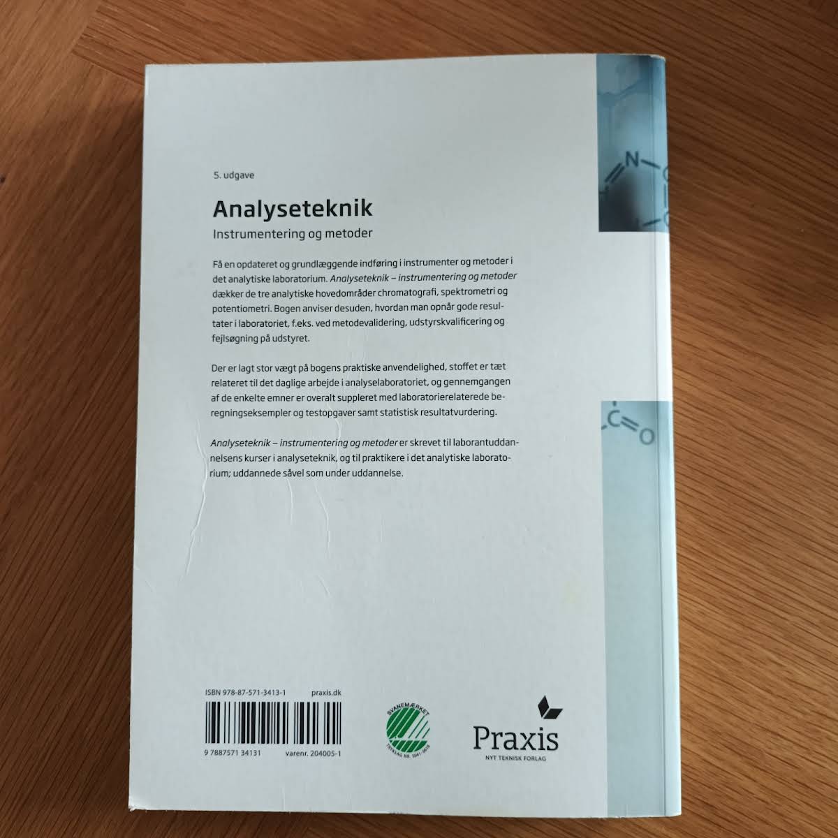 Analyseteknik - Instrumentering og metoder (5. udgave, 2020) giver en systematisk gennemgang af de væsentligste teknikker og apparaturer, der anvendes i et moderne analytisk laboratorium. Bogen introducerer principperne bag de centrale instrumentelle metoder og formidler teori og praksis i ét samlet værk. Indholdet er organiseret omkring de tre søjler i analytisk kemi: kromatografi, spektrometri og potentiometri. Hertil kommer kapitler om statistisk vurdering af resultater, metodevalidering samt kvalificering af udstyr. Desuden præsenteres en række basale redskaber til problemløsning og datahåndtering. Der lægges særlig vægt på den praktiske anvendelse, og hvert emne suppleres med laboratorierelevante beregningseksempler og øvelsesopgaver, som knytter teori tæt sammen med det daglige arbejde. Illustrationer og skematiske oversigter understøtter forståelsen af komplekse processer. Bogen er velegnet både som kursuslitteratur og som opslagsværk i laboratoriet. Den klare struktur og de selvstændige afsnit gør det nemt at finde netop det, man søger, uden at skulle læse forudgående kapitler.