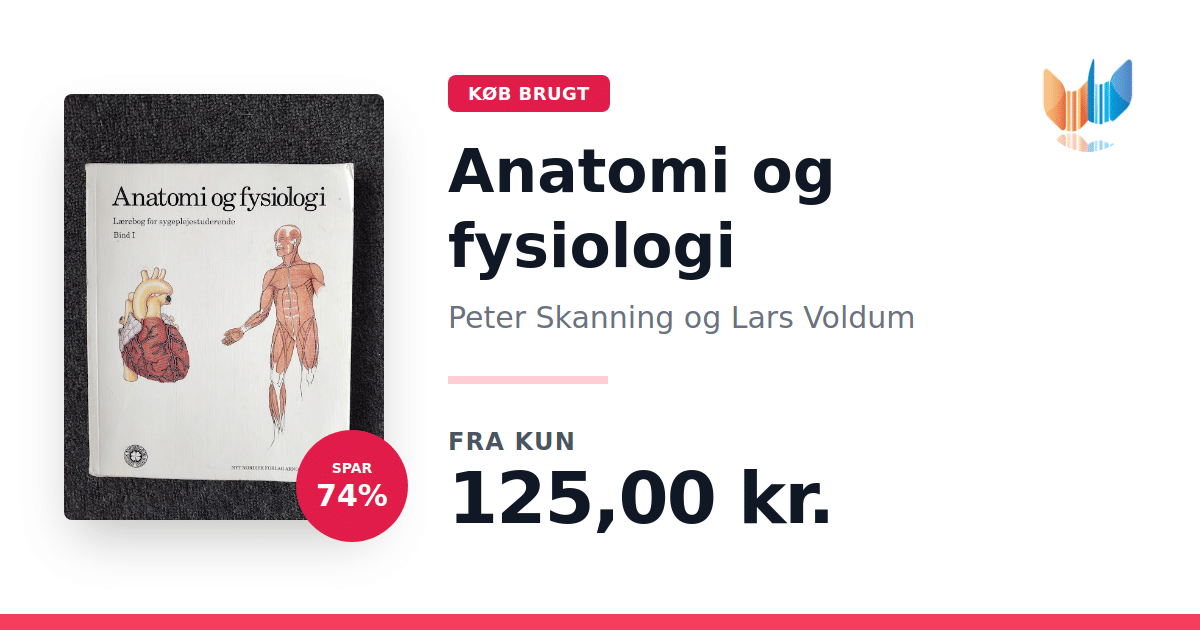 Lige nu kan du købe "Anatomi og fysiologi" af Peter Skanning til kun 40,00 kr. Du sparer hele 92% af nyprisen! Bogen du ser her er brugt, og i god stand. Vi har i øjeblikket 2 eksemplarer til salg af "Anatomi og fysiologi", så husk at se de forskellige udgaver.