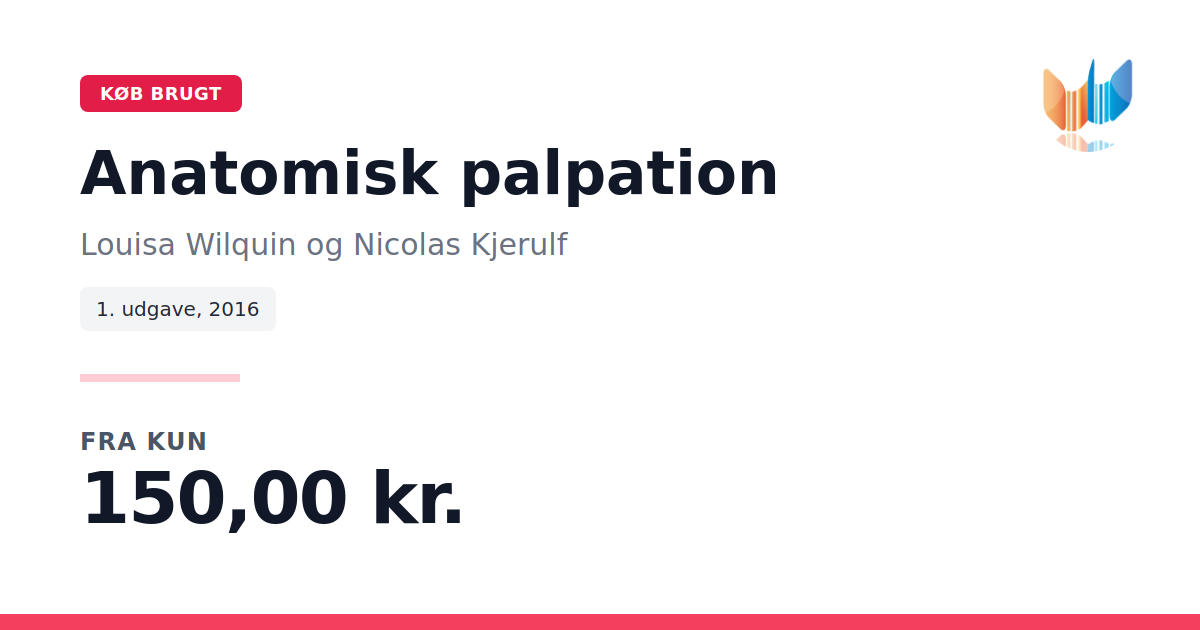 Lige nu kan du købe "Anatomisk palpation" af Louisa Wilquin og Nicolas Kjerulf til kun 150,00 kr. Du sparer hele 43% af nyprisen! Bogen du ser her er brugt, og i perfekt stand. Vi har i øjeblikket kun et enkelt eksemplar til salg af "Anatomisk palpation", så slå til mens du kan!