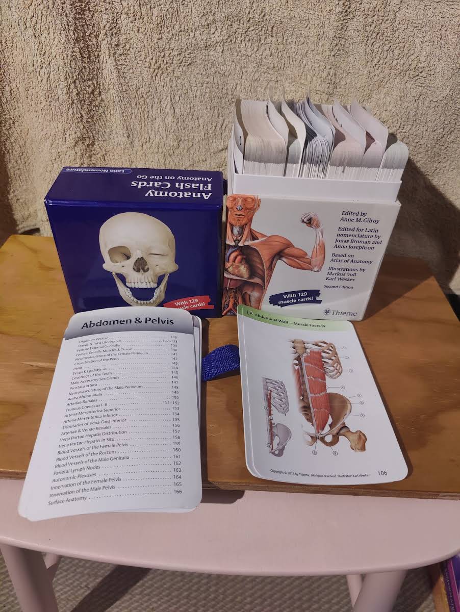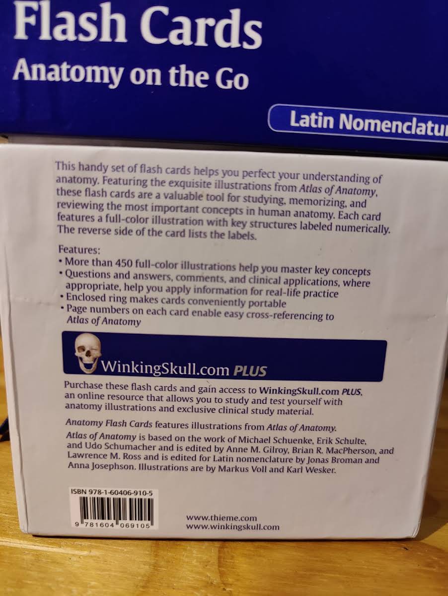 Flashkort samling i perfekt stand. 5 stykker af kortene har enkelte noter påskrevet sig med sprit tush, så det kan tørres af igen hvis man ønsker det. Det er rigtig fine kort til at øve sig i sin anatomi, og de fungerer godt sammen med bogen 'Atlas Of Anatomy' da de er udtænkt som et redskab til at bruge sammen med den.