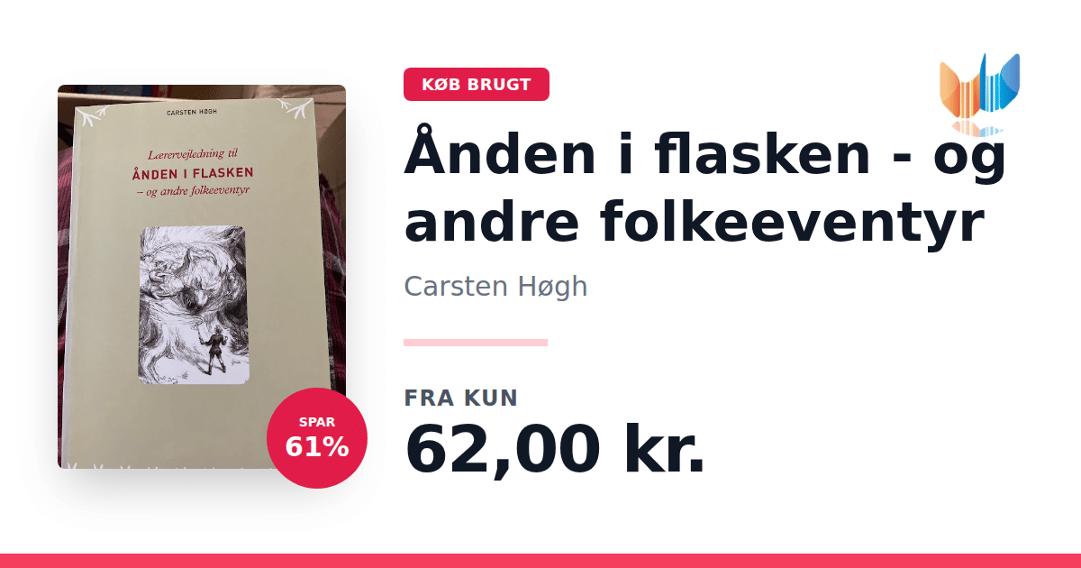 Lige nu kan du købe "Ånden i flasken - og andre folkeeventyr" af Carsten Høgh til kun 62,00 kr. Du sparer hele 61% af nyprisen! Bogen du ser her er brugt, og i god stand. Vi har i øjeblikket 3 eksemplarer til salg af "Ånden i flasken - og andre folkeeventyr", så husk at se de forskellige udgaver.