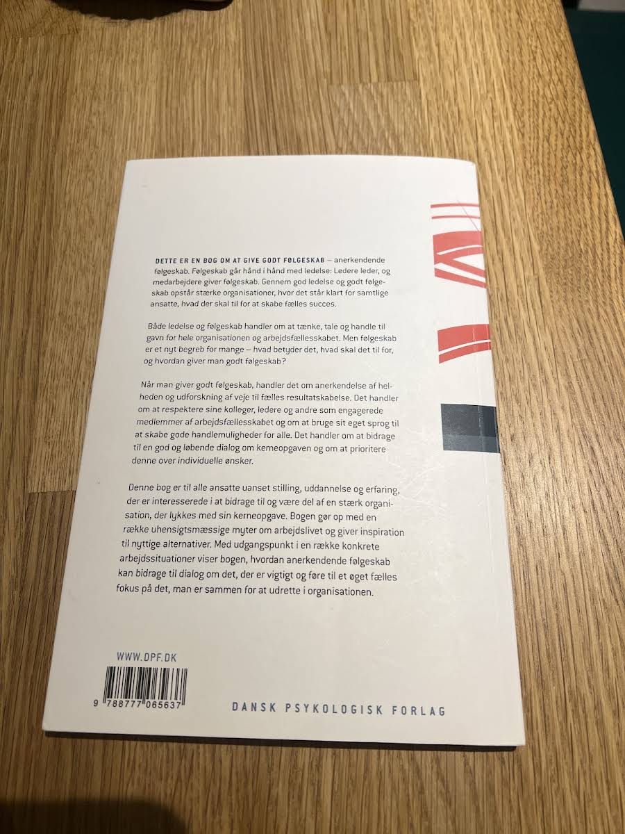 Anerkendende følgeskab er en letlæselig guide, der sætter fokus på, hvordan medarbejdere kan styrke arbejdsglæden og skabe et positivt samarbejde. I denne bog illustreres betydningen af et anerkendende følgeskab gennem en række praktiske eksempler, der spejler hverdagssituationer på arbejdspladsen. Forfatterne, Maja Loua Haslebo og Magnus Harald Haslebo, præsenterer konkrete metoder, redskaber og dialoginput, som understøtter både medarbejdernes og ledernes roller i at skabe et sundt og engageret arbejdsmiljø. Med sin inspirerende tilgang opfordrer bogen til en bevidst og aktiv indsats for at opnå et stærkere fællesskab og fælles resultatskabelse.