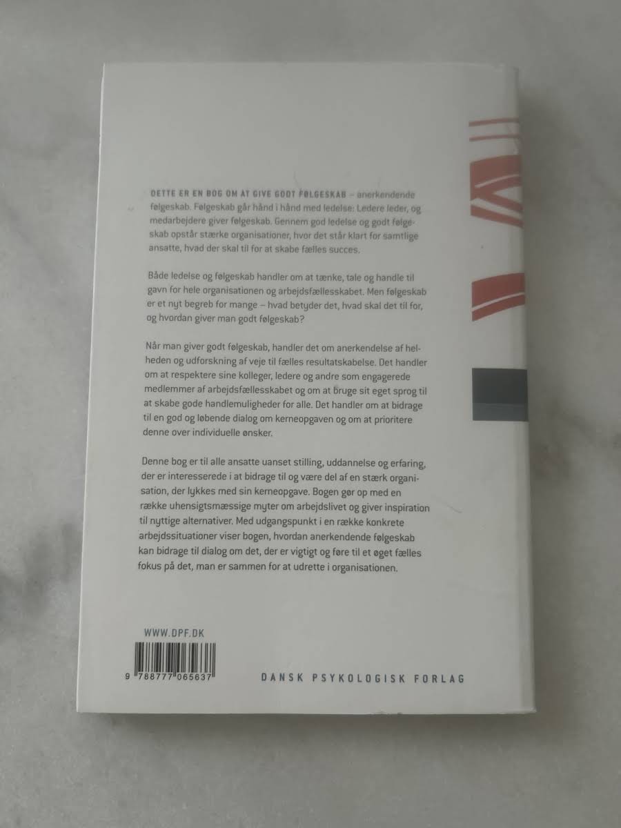 Anerkendende følgeskab er en letlæselig guide, der sætter fokus på, hvordan medarbejdere kan styrke arbejdsglæden og skabe et positivt samarbejde. I denne bog illustreres betydningen af et anerkendende følgeskab gennem en række praktiske eksempler, der spejler hverdagssituationer på arbejdspladsen. Forfatterne, Maja Loua Haslebo og Magnus Harald Haslebo, præsenterer konkrete metoder, redskaber og dialoginput, som understøtter både medarbejdernes og ledernes roller i at skabe et sundt og engageret arbejdsmiljø. Med sin inspirerende tilgang opfordrer bogen til en bevidst og aktiv indsats for at opnå et stærkere fællesskab og fælles resultatskabelse.