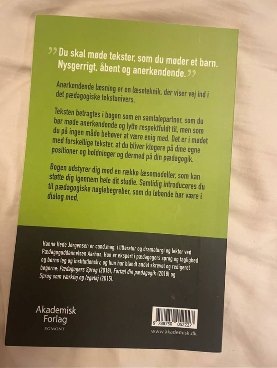 Anerkendende læsning introducerer en innovativ tilgang til at forholde sig til tekster i det pædagogiske univers. I bogen opfordres du til at møde teksten som en levende samtalepartner – én, du anerkender og lytter til med respekt, selvom du ikke altid behøver at dele alle dens synspunkter. Gennem mødet med et bredt spektrum af tekster bliver du inviteret til at reflektere over dine egne positioner og holdninger. Bogen giver dig et redskabssæt af læsemodeller, der understøtter din udvikling og hjælper dig med at udforske essentielle pædagogiske nøglebegreber undervejs i studiet.