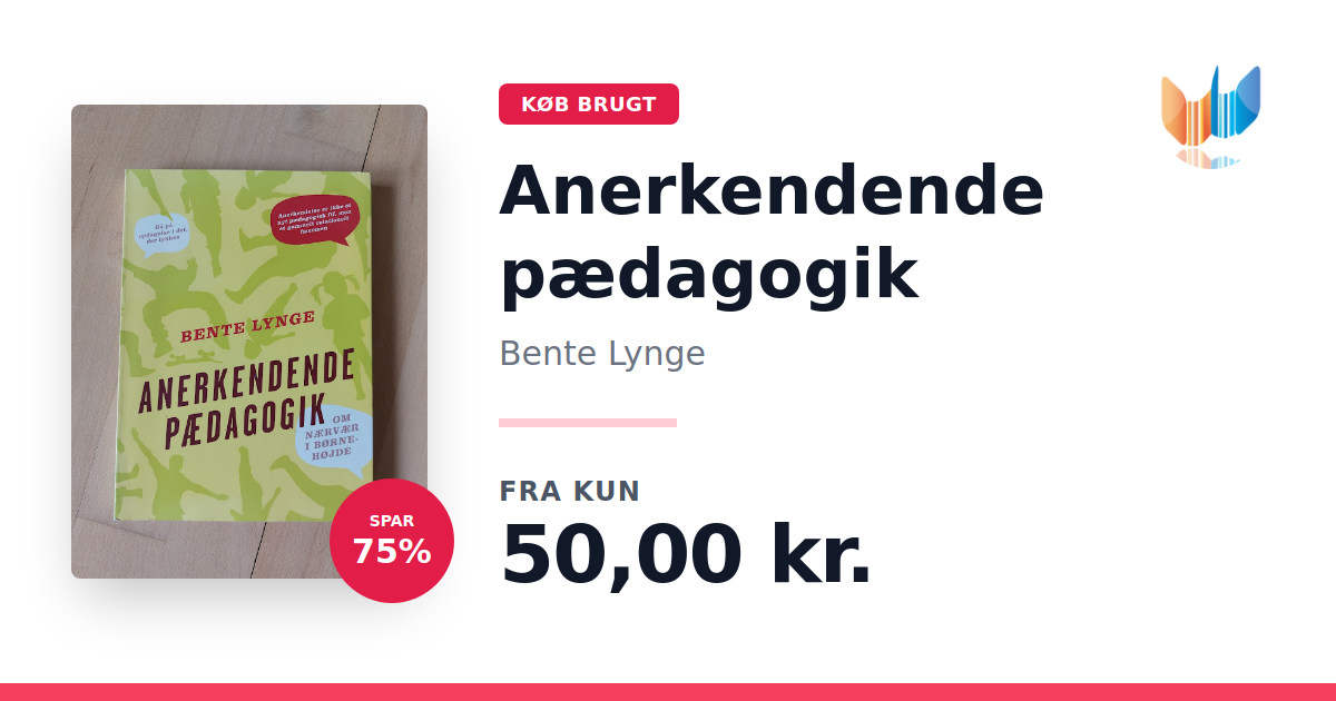 Lige nu kan du købe "Anerkendende pædagogik" af Bente Lynge til kun 50,00 kr. Du sparer hele 75% af nyprisen! Bogen du ser her er brugt, og i god stand. Vi har i øjeblikket 2 eksemplarer til salg af "Anerkendende pædagogik", så husk at se de forskellige udgaver.