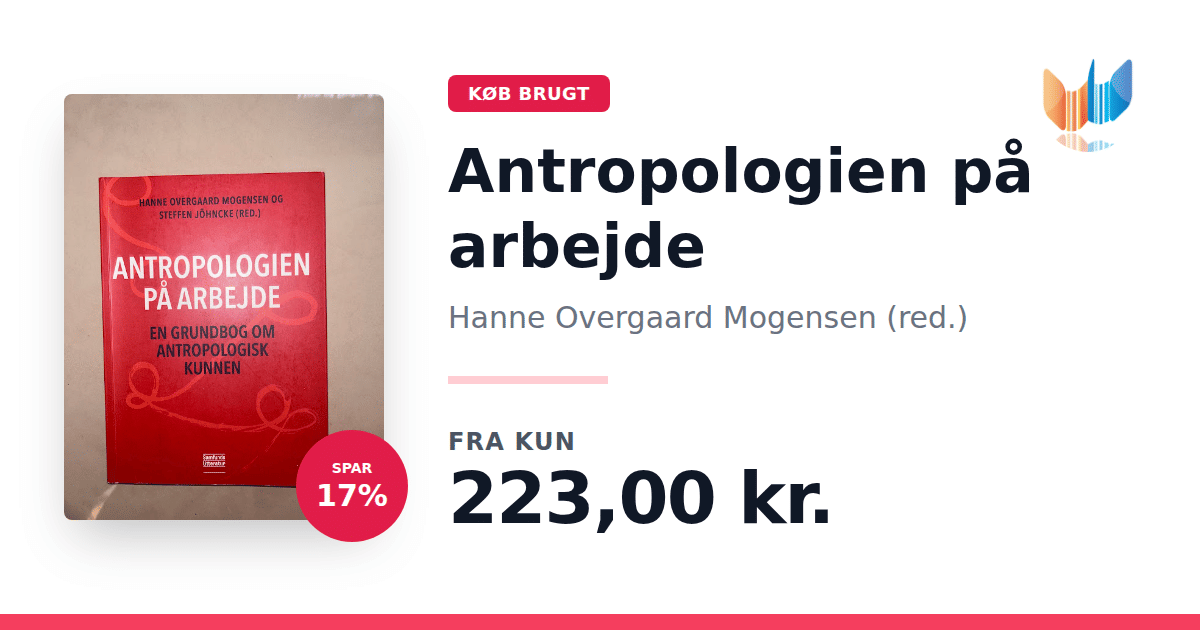 Lige nu kan du købe "Antropologien på arbejde" af Hanne Overgaard Mogensen (red.) til kun 223,00 kr. Du sparer hele 17% af nyprisen! Bogen du ser her er brugt, og i perfekt stand. Vi har i øjeblikket kun et enkelt eksemplar til salg af "Antropologien på arbejde", så slå til mens du kan!