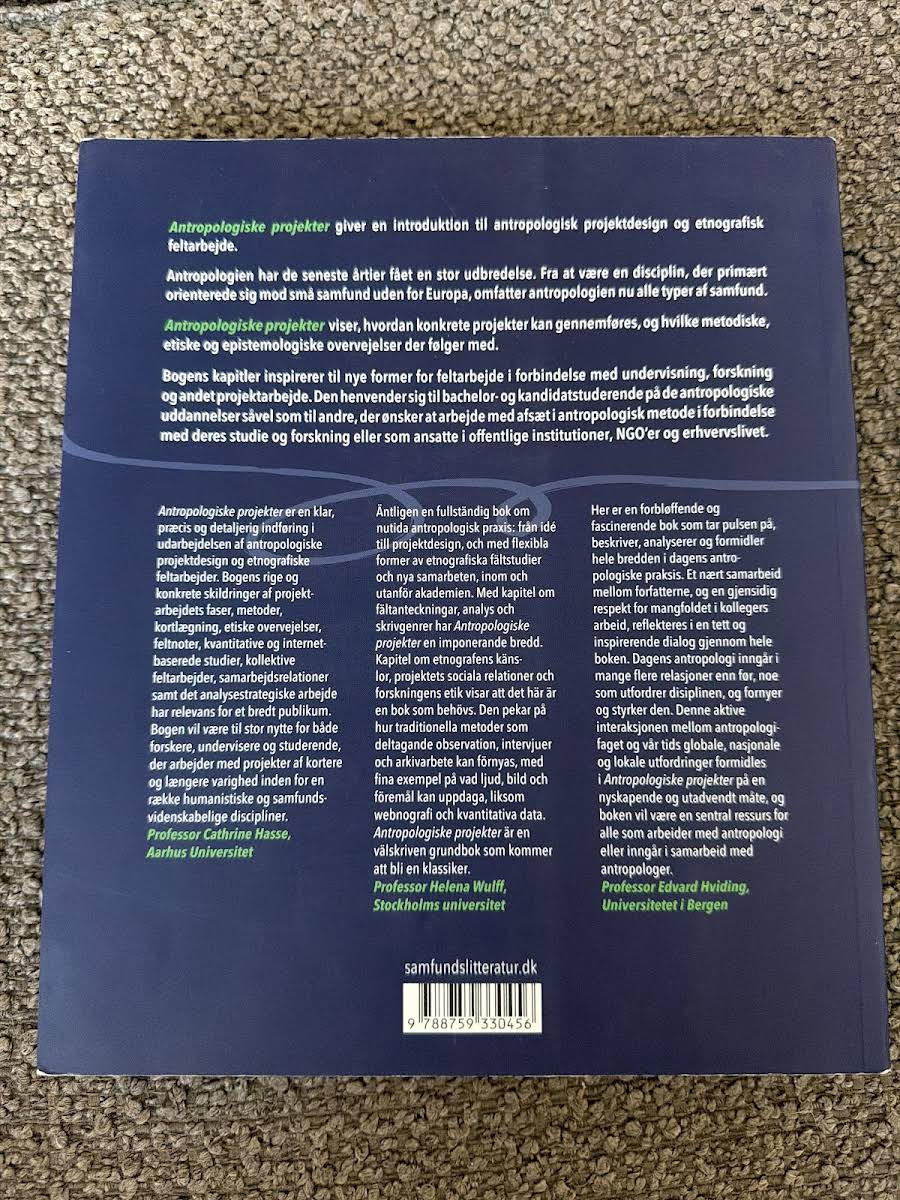 Antropologiske projekter introducerer læseren til den essentielle proces i antropologisk projektdesign og etnografisk feltarbejde. Bogen skitserer, hvordan konkrete projekter planlægges, og hvilke metodiske, etiske og epistemologiske overvejelser der opstår i processen. Med udgangspunkt i den moderne antropologis brede anvendelsesområde opfordres læseren til at afprøve nye tilgange til feltarbejde. Indsigtsfulde kapitler omhandler projektets forskellige faser, herunder kortlægning, feltnotater, kvantitative studier, kollektive feltarbejder samt samarbejdsrelationer og analyse. Bogen henvender sig både til bachelor- og kandidatstuderende inden for antropologi samt til andre, der ønsker at integrere antropologiske metoder i deres forskning og undervisning. Antropologiske projekter er et redskab, der inspirerer til nytænkning og fornyelse af traditionelle metoder i en moderne kontekst.