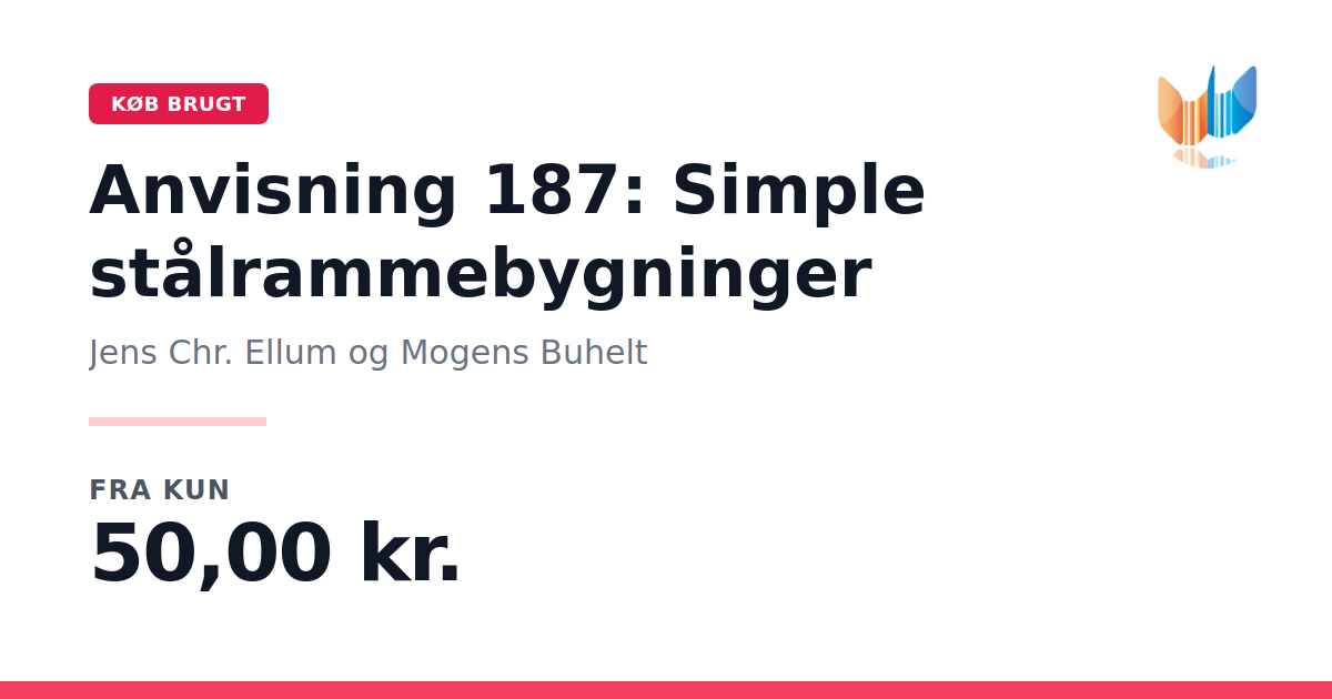 Anvisning 187: Simple stålrammebygninger er en præcis og praktisk vejledning til dimensionering og udførelse af simple stålrammebygninger med en konstruktiv opbygning. Bogen behandler designet af lukkede, fritliggende bygninger i én etage, hvor tagkonstruktionen primært påvirkes af egenlast samt naturlaster som sne og vind. Guiden henvender sig til arkitekter, tekniske rådgivere og myndigheder med interesse for moderne stålrammekonstruktioner. I denne udgave præsenteres omfattende tabeldata, herunder stålramme-, åse- og vindgittertabeller, og bogen indeholder en række detaljerede tegninger, som gør det nemt at følge de tekniske anvisninger. Bogen rummer desuden en systematisk fremgangsmåde til udførelsen af stålrammebygninger, som anvendes inden for landbruget og industrien. Med fokus på både lav og normal sikkerhedsklasse er dette et uundværligt redskab for alle, der arbejder med moderne byggeteknik.