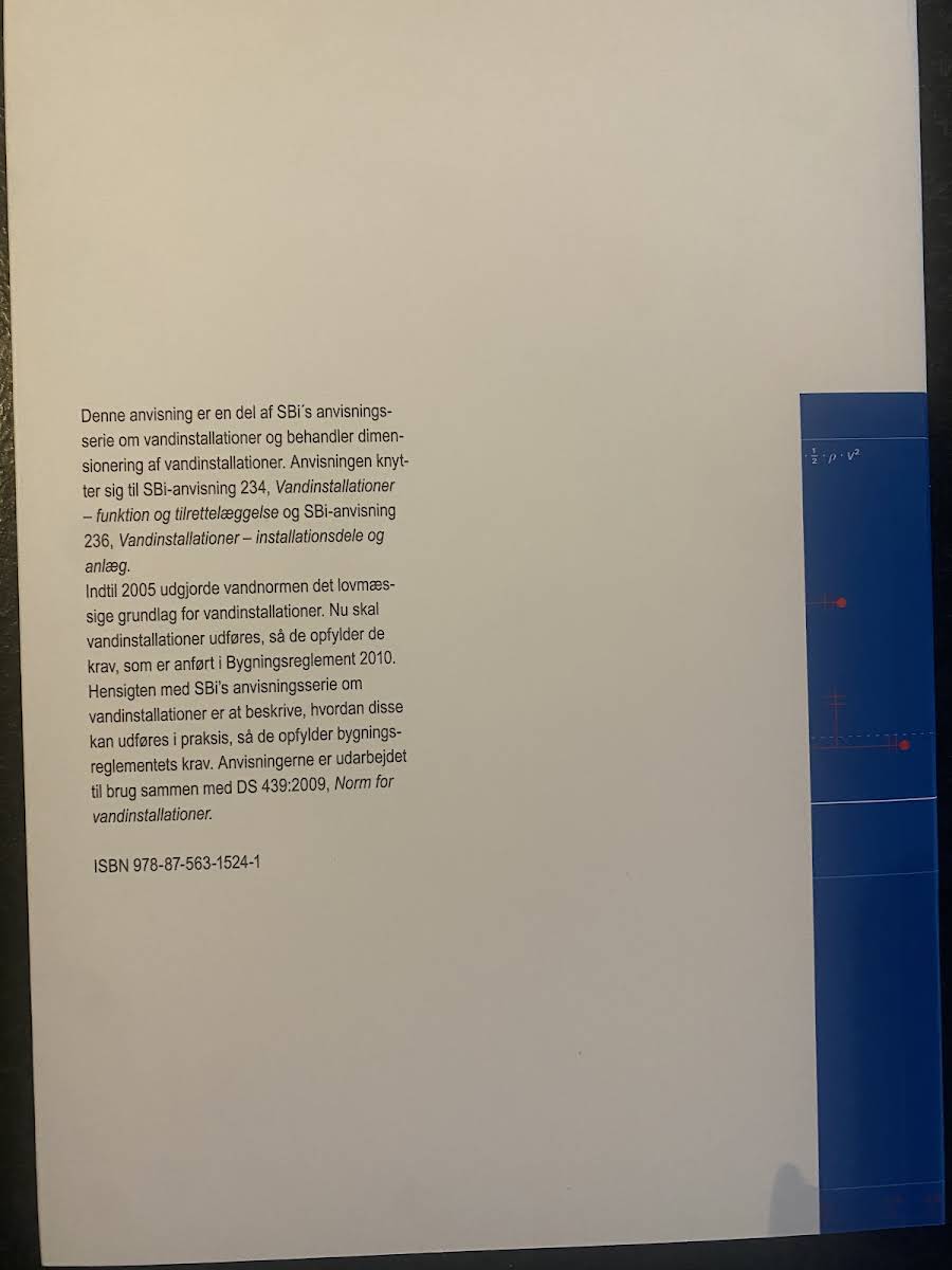Denne anvisning 235 indgår i SBi’s anvisningsserie om vandinstallationer og fokuserer på dimensionering af vandinstallationer i boliger og lignende anvendelser. Den beskriver, hvordan installationerne kan planlægges og udføres, så de lever op til de krav, der er fastsat i moderne bygningsreglementer. Anvisningen knytter sig til SBi-anvisning 234, som omhandler funktion og tilrettelæggelse, samt SBi-anvisning 236, der dykker ned i installationsdele og anlæg. Indtil 2005 tjente vandnormen som det lovmæssige grundlag for vandinstallationer, hvorefter nye krav er blevet indført i Bygningsreglement 2010. Formålet med serien er at give en praktisk vejledning, der sikrer, at vandinstallationer realiseres med fuld overensstemmelse af de gældende tekniske og lovmæssige standarder.