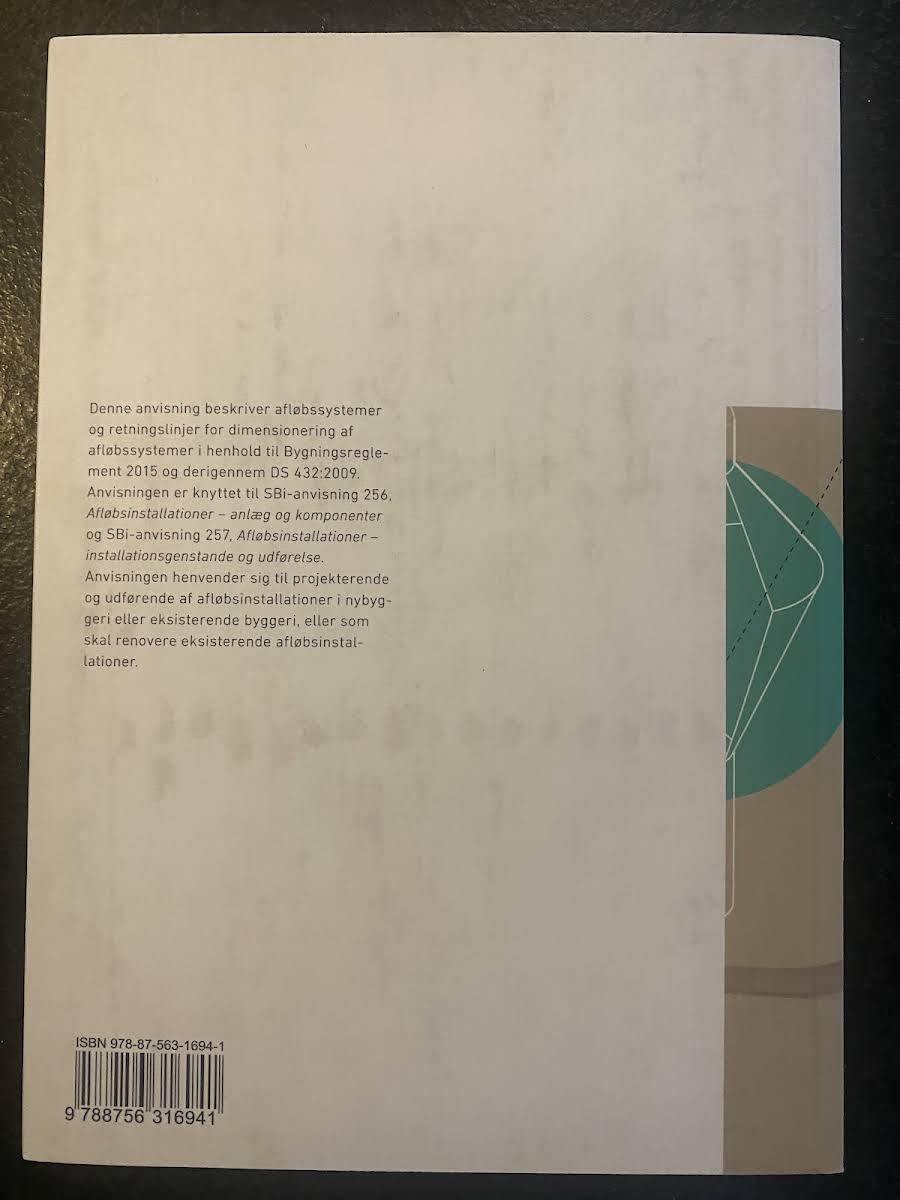 Anvisning 255: Afløbsinstallationer – Systemer og Dimensionering giver en grundig gennemgang af afløbssystemer og de fastlagte retningslinjer for dimensionering som fastlagt i Bygningsreglement 2010 og DS 432:2009. Bogen beskriver de gældende principper, som fortsat er anvendelige for bygninger udført efter BR15, idet der ikke er ændret de relevante bestemmelser i forhold til BR10. Bogen henvender sig til både projekterende og udførende fagfolk, der arbejder med afløbsinstallationer i nybyggeri såvel som i eksisterende bygninger eller ved renoveringer. Med sine 144 sider i paperback er den et uundværligt redskab for alle, der beskæftiger sig med tekniske installationer og dimensionering af afløbssystemer.