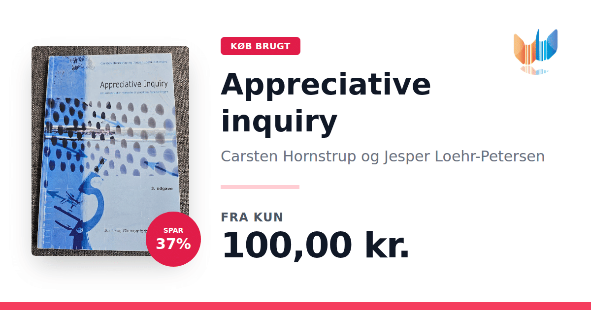 Appreciative Inquiry er en arbejdsmetode, hvor man undersøger sine succeser og bruger dem til at styrke både organisationen, den enkelte medarbejder og hele teams. Denne brugsbog giver et praktisk og letforståeligt indblik i, hvordan man skaber et mere konstruktivt og positivt udgangspunkt for ledelse og udvikling. Forfatterne Carsten Hornstrup og Jesper Loehr-Petersen demonstrerer med konkrete eksempler, hvordan metoden anvendes i diverse sammenhænge såsom organisatoriske udviklingsforløb, gruppeudvikling, supervision, uddannelsesplanlægning samt karriere- og projektledelse. Bogen, der udgives af Jurist- og Økonomforbundet, fremstår som et værdifuldt redskab til at fremme innovation og forandringsvillighed i organisationer.