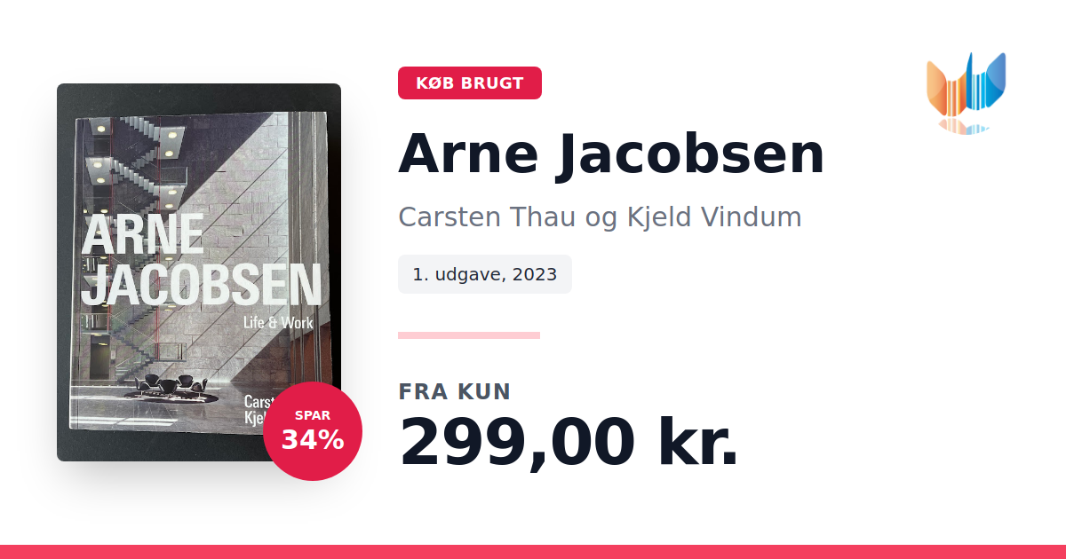 Lige nu kan du købe "Arne Jacobsen" af Carsten Thau og Kjeld Vindum til kun 299,00 kr. Du sparer hele 34% af nyprisen! Bogen du ser her er brugt, og i perfekt stand. Vi har i øjeblikket kun et enkelt eksemplar til salg af "Arne Jacobsen", så slå til mens du kan!