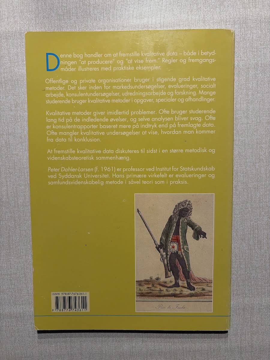 "At fremstille kvalitative data" præsenterer en grundig tilgang til produktionen og formidlingen af kvalitative data. Gennem en række praktiske eksempler belyses de konkrete regler og fremgangsmåder, der er nødvendige for at arbejde med denne metode. Bogen redegør for kvalitativ dataanvendelse i en bred vifte af felter – fra markedsundersøgelser og evalueringer til socialt arbejde, konsulentopgaver, udredninger og forskningsprojekter. Den illustrerer, hvordan studerende og praktikere kan støde på metoden og de potentielle udfordringer, der ofte ses i overgangen fra dataindsamling til analyse. Afslutningsvis sætter bogen sig ind i en større metodisk og videnskabsteoretisk ramme, der bidrager til en dybere forståelse af, hvordan kvalitative data bedst fremstilles og anvendes. Peter Dahler-Larsen (f. 1961), professor ved Institut for Statskundskab, demonstrerer med sin ekspertise både teoretiske og praktiske aspekter af evalueringer og samfundsvidenskabelige metoder.