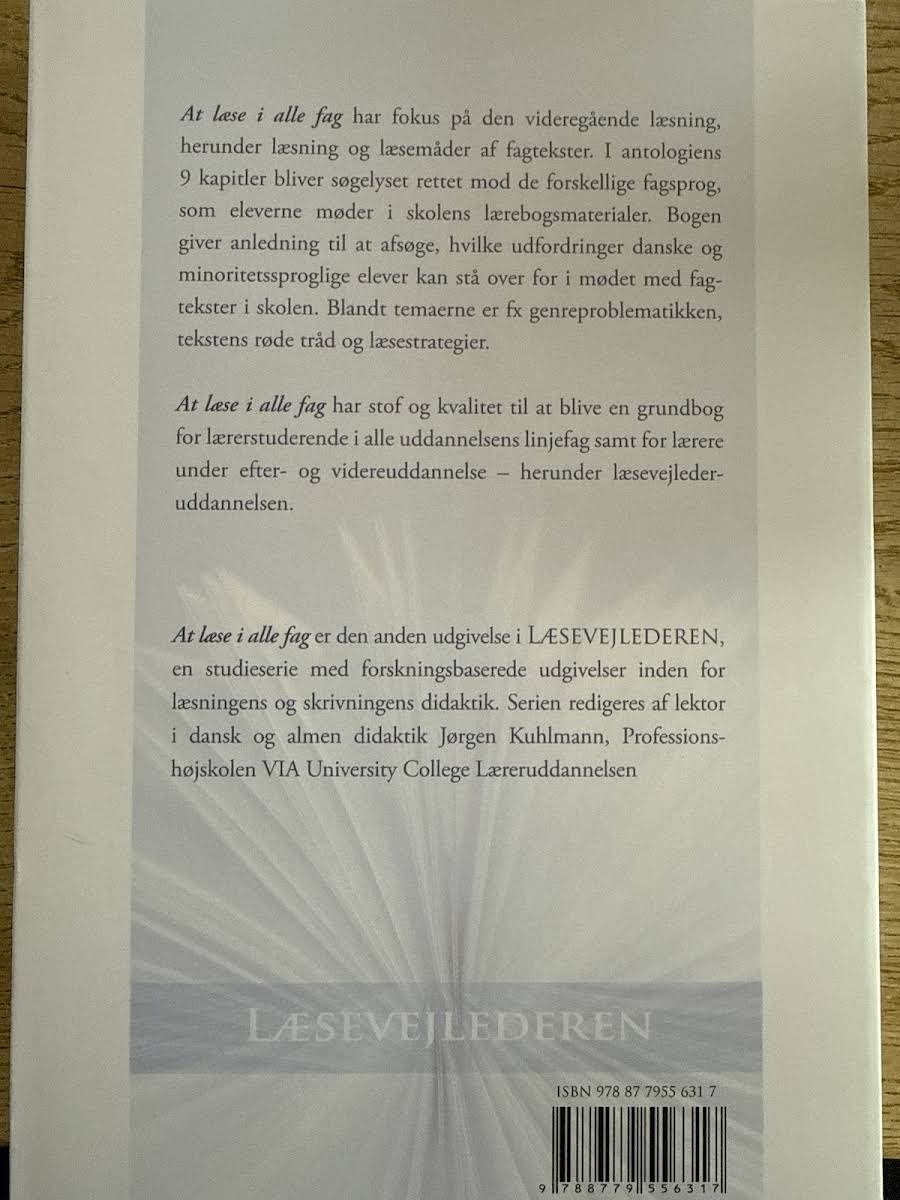 I "At læse i alle fag" sættes fokus på, hvordan sprog spiller en central rolle i udviklingen af viden, forståelse og refleksion på tværs af skolens fag. Bogen undersøger, hvordan hvert fag udvikler sine unikke genrer, begrebsapparater og udtryksformer, der er med til at forme både læsning og formidling af fagtekster. Med udgangspunkt i skolens lærebogsmaterialer belyser forfatterne Elise Seip Tønnnesen og Eva Maagerø de udfordringer, som både danske og minoritetssproglige elever kan stå over for, når de møder komplekse fagtekster. Publikation fra Klim fra 2009 præsenterer en dybdegående analyse af, hvordan læsning i alle fag bidrager til den faglige udvikling og forståelse.