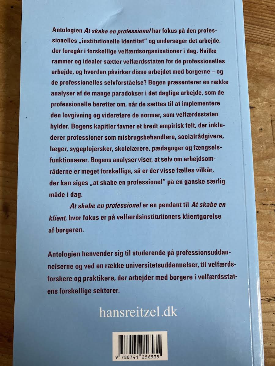 "At skabe en professionel" er en antologi, der dykker ned i den institutionelle identitet og de særlige rammer, som velfærdsstaten sætter for de professionelle. Gennem bidrag fra bl.a. Margaretha Järvinen, Nanna Mik-meyer, Anne Roelsgaard Obling, Helle Bjerg, Hanne Knudsen, Malene Molding Nielsen, Kathrine Vitus, Marie Østergaard Møller, Jens Kofod og Kathrine Hoffmann Pii udfolder bogen, hvordan disse rammer påvirker både arbejdet i velfærdsorganisationer og de professionelle aktørers selvopfattelse. Med et bredt empirisk udsnit, der spænder over områder som socialt arbejde, sundhed, pædagogik og fængselssektoren, giver bogen indblik i de paradokser og dilemmaer, som de professionelle møder i deres daglige praksis. Bogen henvender sig til studerende på professionsuddannelser og universiteter, der beskæftiger sig med forskning i velfærdsinstitutioner, samt til praktikere, der ønsker en dybere forståelse af, hvad der skal til for at forme en professionel i dagens komplekse arbejdsmiljø.