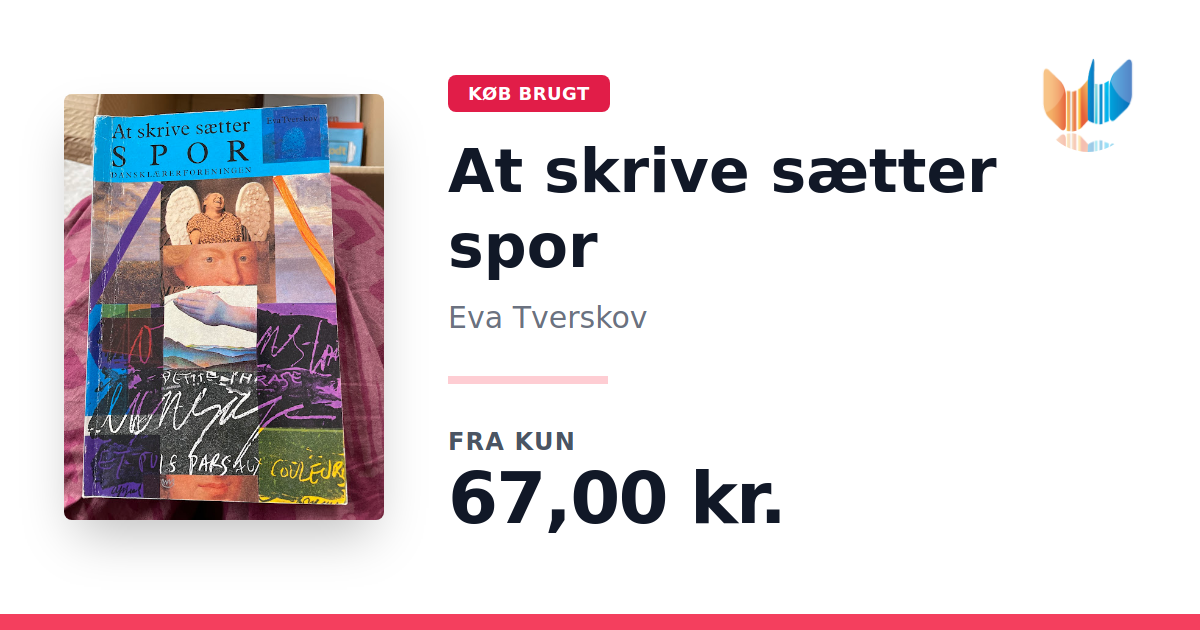Lige nu kan du købe "At skrive sætter spor" af Eva Tverskov til kun 67,00 kr. Bogen du ser her er brugt, og i god stand. Vi har i øjeblikket kun et enkelt eksemplar til salg af "At skrive sætter spor", så slå til mens du kan!