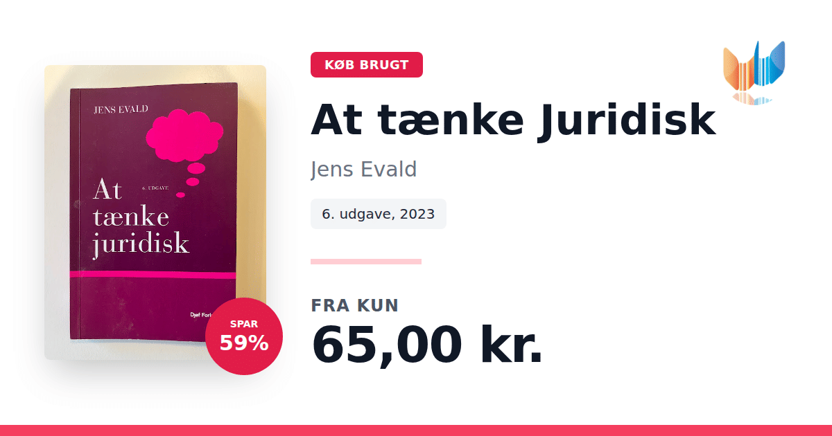 "At tænke Juridisk" er en let tilgængelig introduktion til juridisk metode – den tilgang, som både domstole og andre, der skal redegøre for konkrete retlige problemstillinger, anvender. Bogen giver læseren et indblik i, hvordan man systematisk kan nærme sig komplekse juridiske dilemmaer gennem en struktureret metode. Forfatteren, Jens Evald, f. 1961, er dr.jur. og professor ved Juridisk Institut, Aarhus Universitet samt voldgiftsdommer ved Court of Arbitration for Sport (CAS) i Lausanne, Schweiz. Med sin omfattende erfaring inden for bl.a. retsfilosofi, privatret og sportsret, præsenterer Evald i denne sjette udgave fra 2023 en kort, men koncentreret fremstilling på 108 sider, der gør juridisk tænkning tilgængelig for alle.