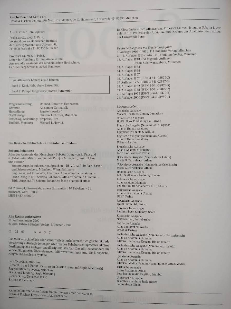 • Atlas der Anatomie des Menschen, Johannes Sobotta, Reinhard Putz, 9783437419508