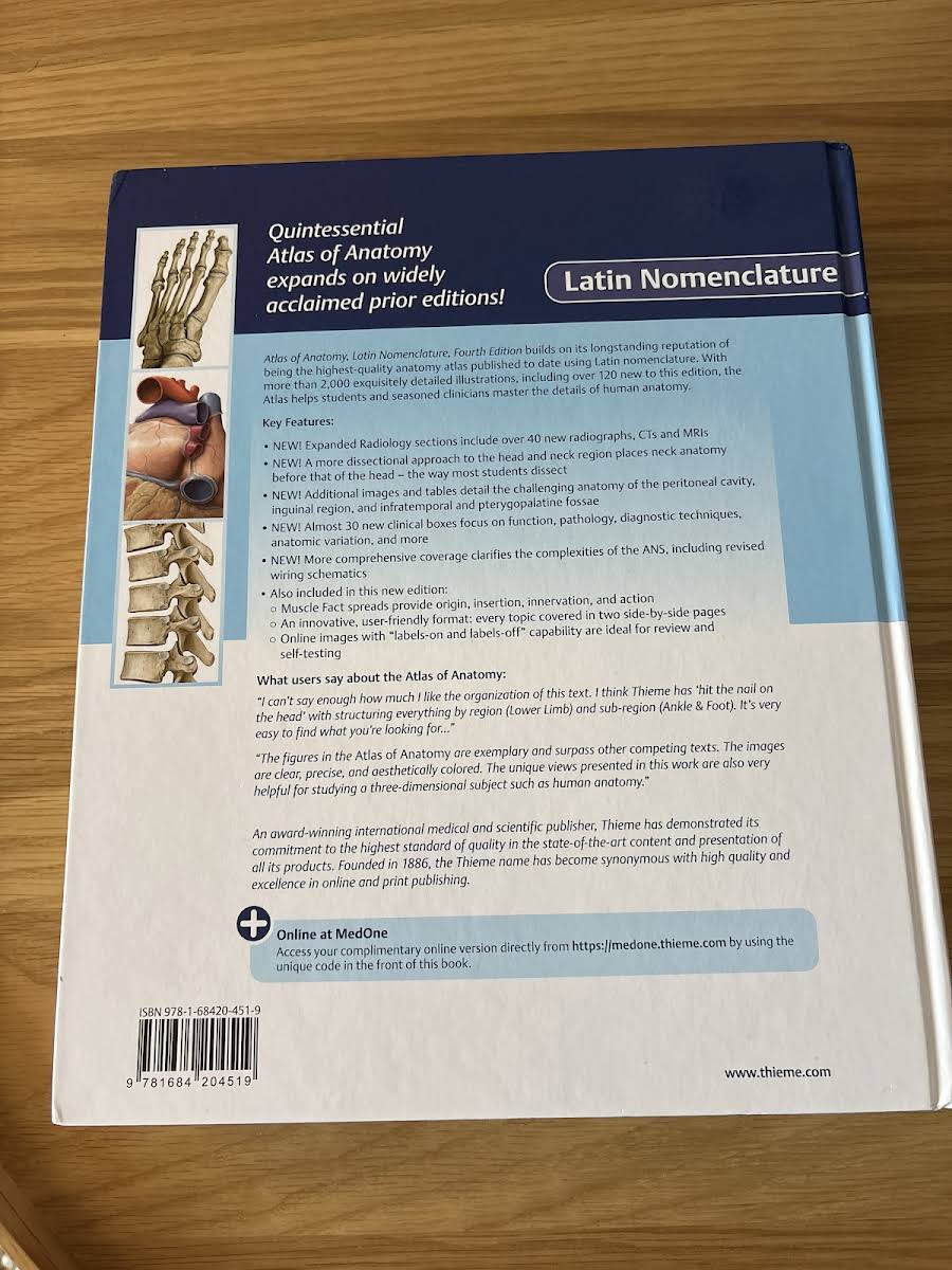 • Atlas of Anatomy: Latin Nomenclature (4th edition 2021), Anne M. Gilroy, 9781684204519