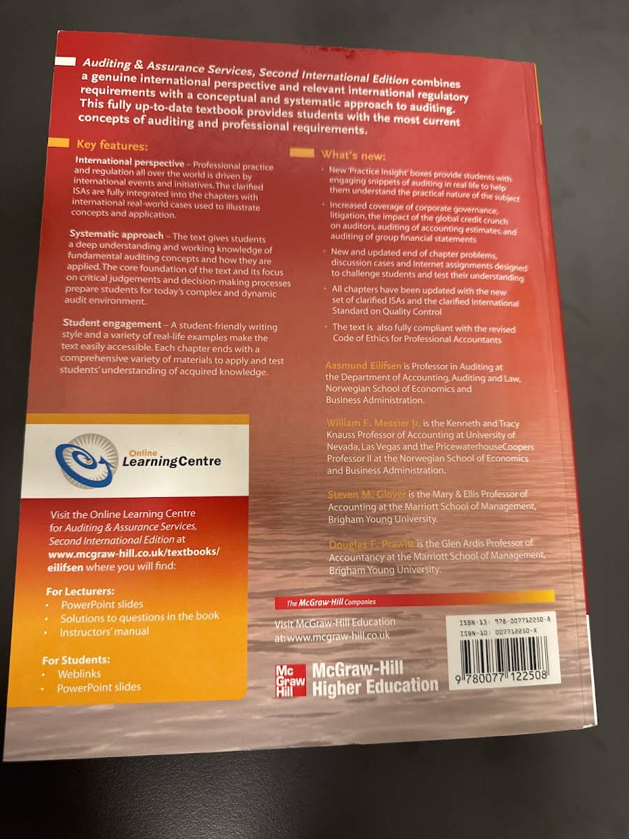 • Auditing and Assurance Services, Aasmund Eilifsen, William Messier Jr, Steven Glover, Douglas Prawitt, 9780077122508