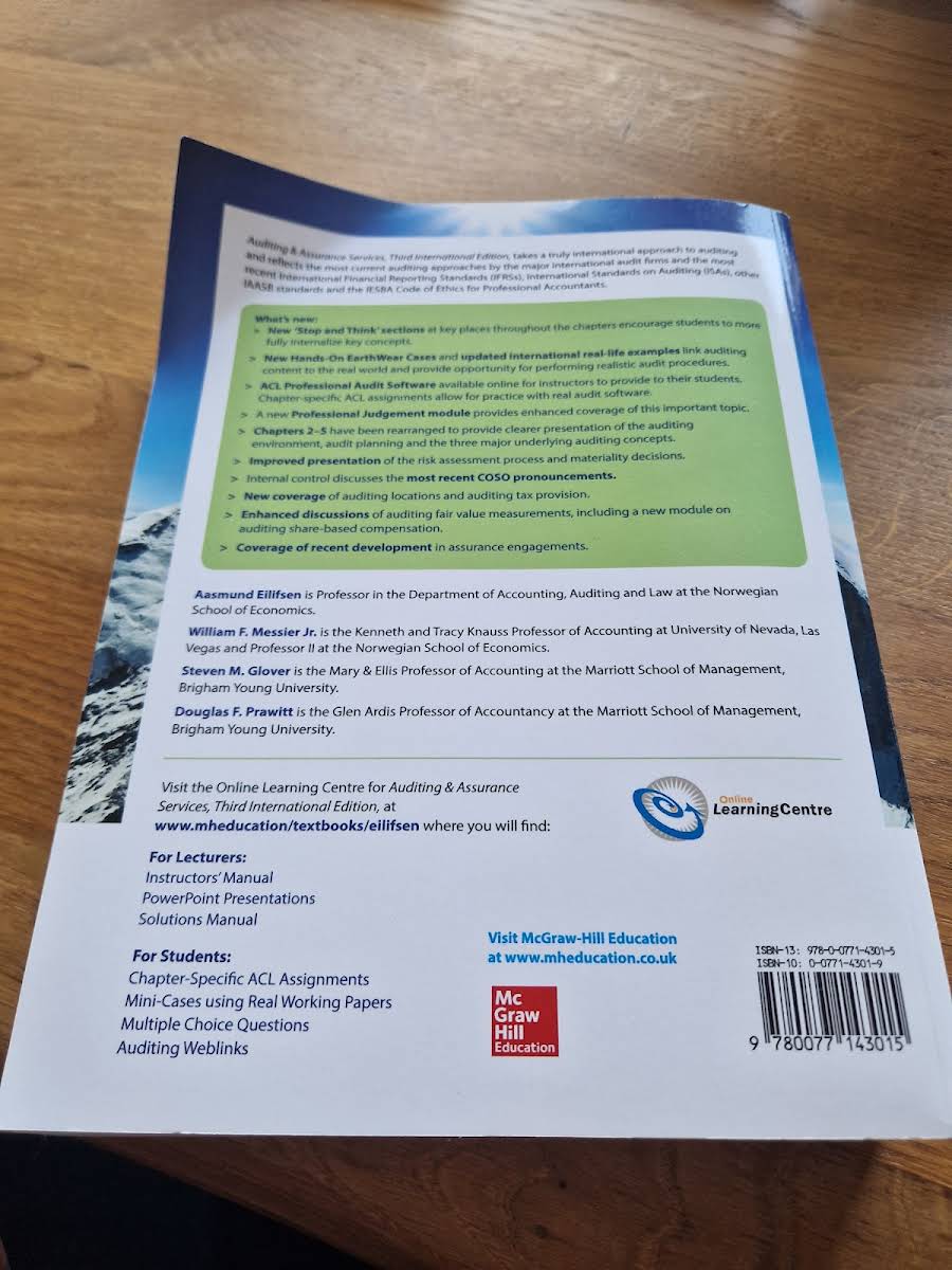 Auditing and Assurance Services is a comprehensive textbook designed to support courses in auditing and assurance. Now in its third edition, this book provides a systematic approach that connects theoretical concepts with practical applications, making it an essential resource for students and professionals alike. With a strong international perspective and adherence to current regulatory standards, the text offers insightful case studies that help bring the theory to life. Authored by Aasmund Eilifsen, William Messier Jr, Steven Glover, and Douglas Prawitt, this 752-page paperback is a valuable addition to any academic or professional library.