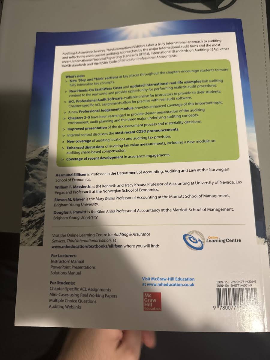 Auditing and Assurance Services is a comprehensive textbook designed to support courses in auditing and assurance. Now in its third edition, this book provides a systematic approach that connects theoretical concepts with practical applications, making it an essential resource for students and professionals alike. With a strong international perspective and adherence to current regulatory standards, the text offers insightful case studies that help bring the theory to life. Authored by Aasmund Eilifsen, William Messier Jr, Steven Glover, and Douglas Prawitt, this 752-page paperback is a valuable addition to any academic or professional library.