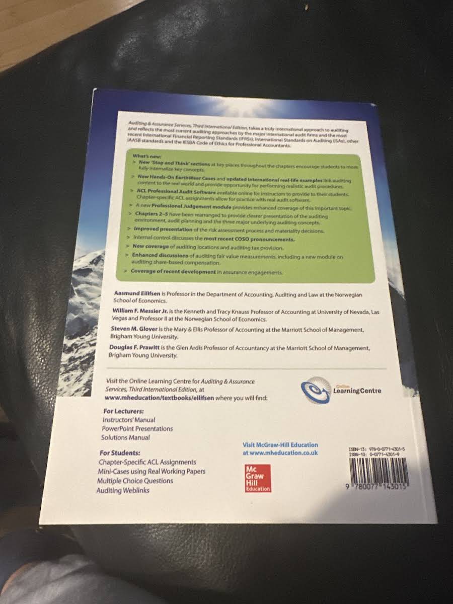 Auditing and Assurance Services is a comprehensive textbook designed to support courses in auditing and assurance. Now in its third edition, this book provides a systematic approach that connects theoretical concepts with practical applications, making it an essential resource for students and professionals alike. With a strong international perspective and adherence to current regulatory standards, the text offers insightful case studies that help bring the theory to life. Authored by Aasmund Eilifsen, William Messier Jr, Steven Glover, and Douglas Prawitt, this 752-page paperback is a valuable addition to any academic or professional library.
