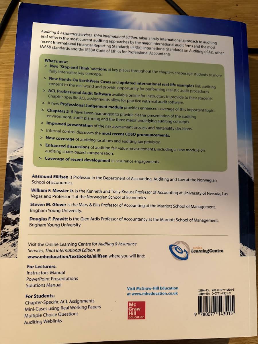Auditing and Assurance Services is a comprehensive textbook designed to support courses in auditing and assurance. Now in its third edition, this book provides a systematic approach that connects theoretical concepts with practical applications, making it an essential resource for students and professionals alike. With a strong international perspective and adherence to current regulatory standards, the text offers insightful case studies that help bring the theory to life. Authored by Aasmund Eilifsen, William Messier Jr, Steven Glover, and Douglas Prawitt, this 752-page paperback is a valuable addition to any academic or professional library.