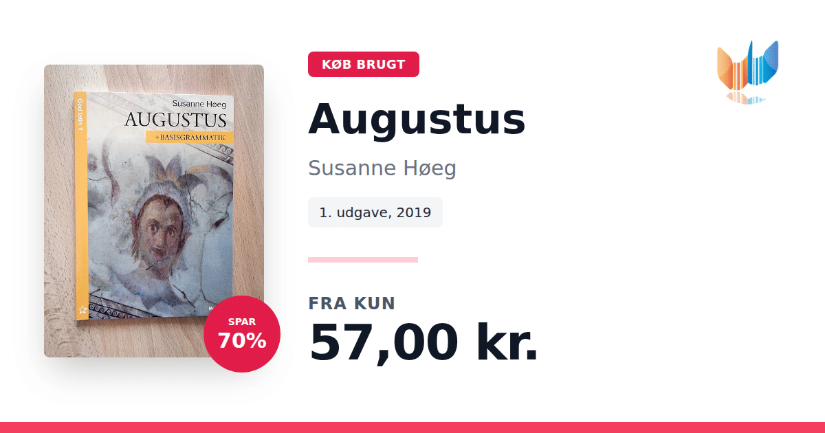 Lige nu kan du købe "Augustus" af Susanne Høeg til kun 57,00 kr. Du sparer hele 70% af nyprisen! Bogen du ser her er brugt, og i god stand. Vi har i øjeblikket kun et enkelt eksemplar til salg af "Augustus", så slå til mens du kan!
