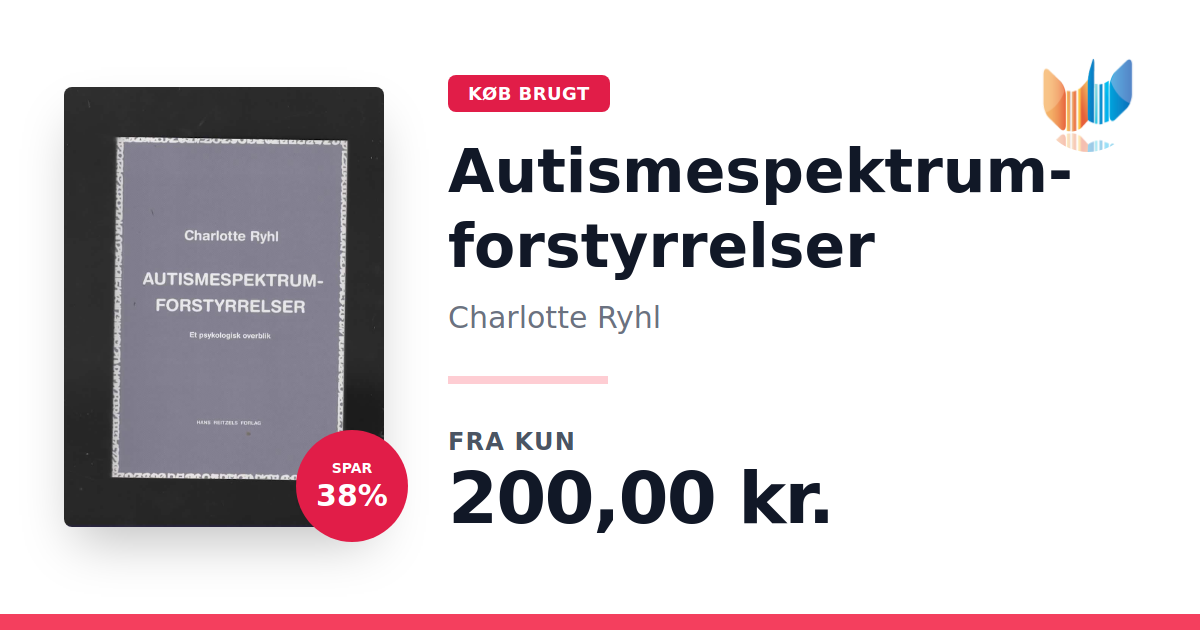 Lige nu kan du købe "Autismespektrum-forstyrrelser" af Charlotte Ryhl til kun 200,00 kr. Du sparer hele 38% af nyprisen! Bogen du ser her er brugt, og i perfekt stand. Vi har i øjeblikket kun et enkelt eksemplar til salg af "Autismespektrum-forstyrrelser", så slå til mens du kan!