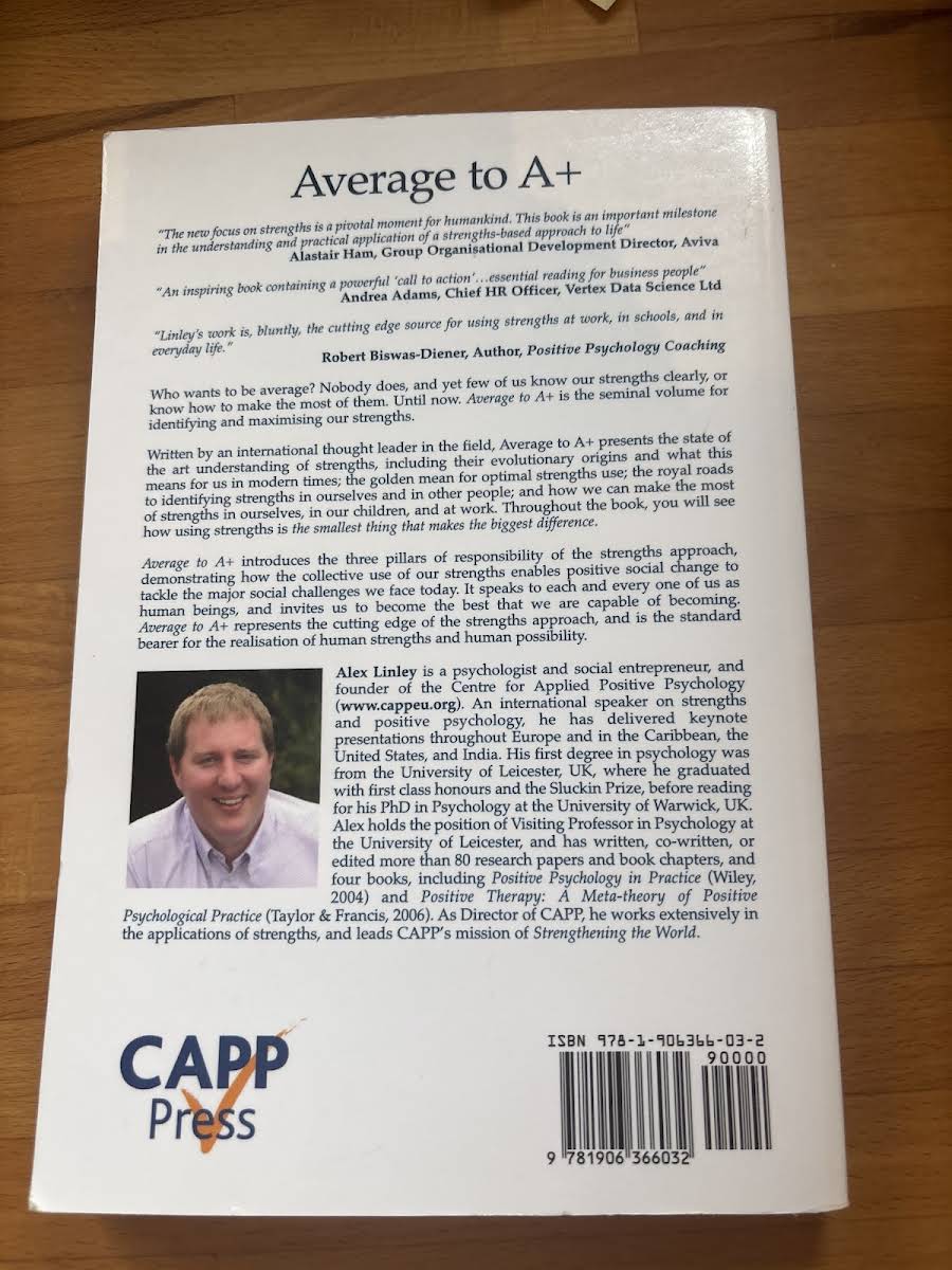 Lige nu kan du købe "Average to A+" af Alex Linley til kun 109,00 kr. Du sparer hele 46% af nyprisen! Bogen du ser her er brugt, og i perfekt stand. Vi har i øjeblikket kun et enkelt eksemplar til salg af "Average to A+", så slå til mens du kan!