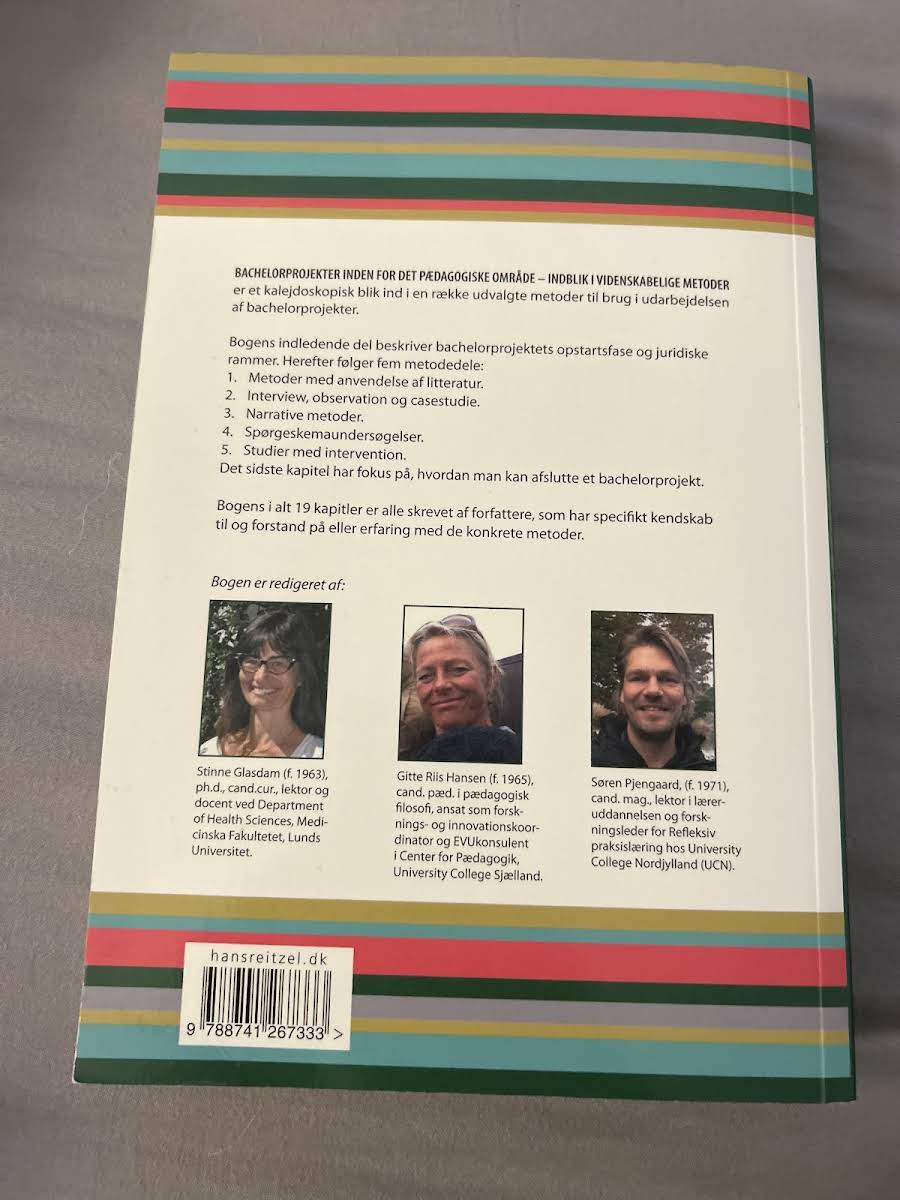 Bachelorprojekter inden for det pædagogiske område byder på et alsidigt indblik i udvalgte metoder, der kan anvendes ved udarbejdelsen af bachelorprojekter på det pædagogiske felt. Bogen præsenterer en struktureret tilgang med en indledende og afsluttende del samt fem centrale metodedele, der hver især fokuserer på praktisk anvendelse af litteraturarbejde, interviews, observationer og casestudier, narrative metoder, spørgeskemaundersøgelser samt studier med intervention. Med bidrag fra forfattere med solid erfaring og indgående kendskab til de konkrete metoder, appellerer denne bog primært til studerende og undervisere inden for professionsbacheloruddannelser på det pædagogiske område. Bogen, udgivet af Hans Reitzels Forlag i 2017, giver et velpræciseret og anvendeligt redskab til at navigere i bachelorprojektets mange metodiske udfordringer.