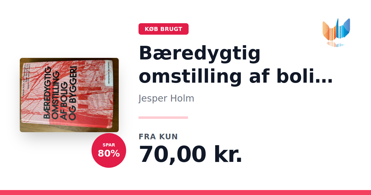 Lige nu kan du købe "Bæredygtig omstilling af bolig og byggeri" af Jesper Holm til kun 70,00 kr. Du sparer hele 80% af nyprisen! Bogen du ser her er brugt, og i slidt stand. Vi har i øjeblikket kun et enkelt eksemplar til salg af "Bæredygtig omstilling af bolig og byggeri", så slå til mens du kan!
