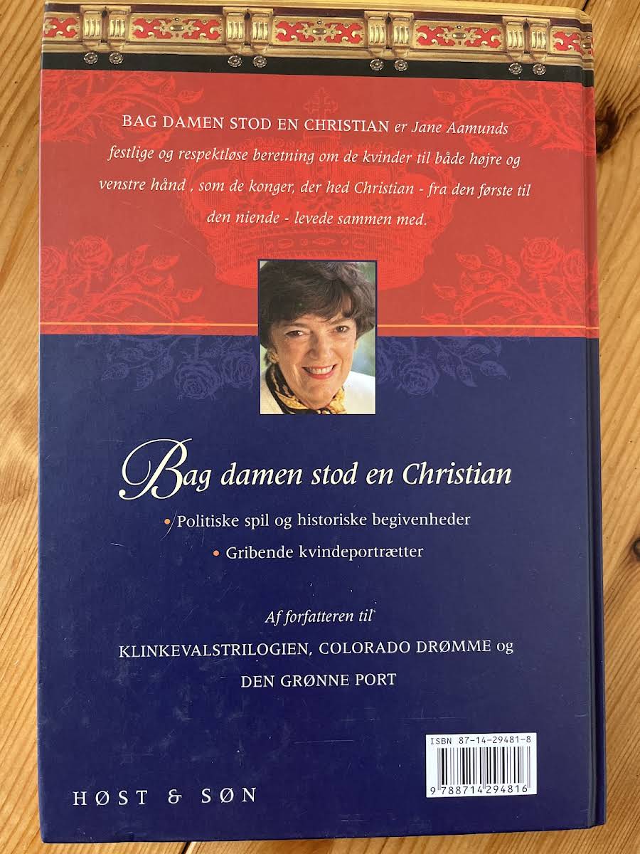 "Bag damen stod en Christian" er en samling af uhøjtidelige portrætter af den danske kongerækkes mange Christianer og kvinderne i deres liv. Det nu velkendte forfatter Jane Aamund debuterede i 1977 med bogen "Bag damen stod en Christian", hvor hun baseret på historisk research dybdegående beskriver en række store personligheder fra den danske kongerække og markante kongefamilier.