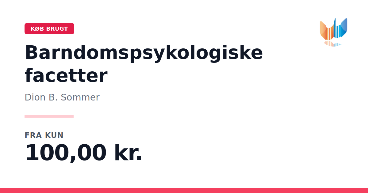 Lige nu kan du købe "Barndomspsykologiske facetter" af Dion B. Sommer til kun 100,00 kr. Du sparer hele 43% af nyprisen! Bogen du ser her er brugt, og i god stand. Vi har i øjeblikket kun et enkelt eksemplar til salg af "Barndomspsykologiske facetter", så slå til mens du kan!